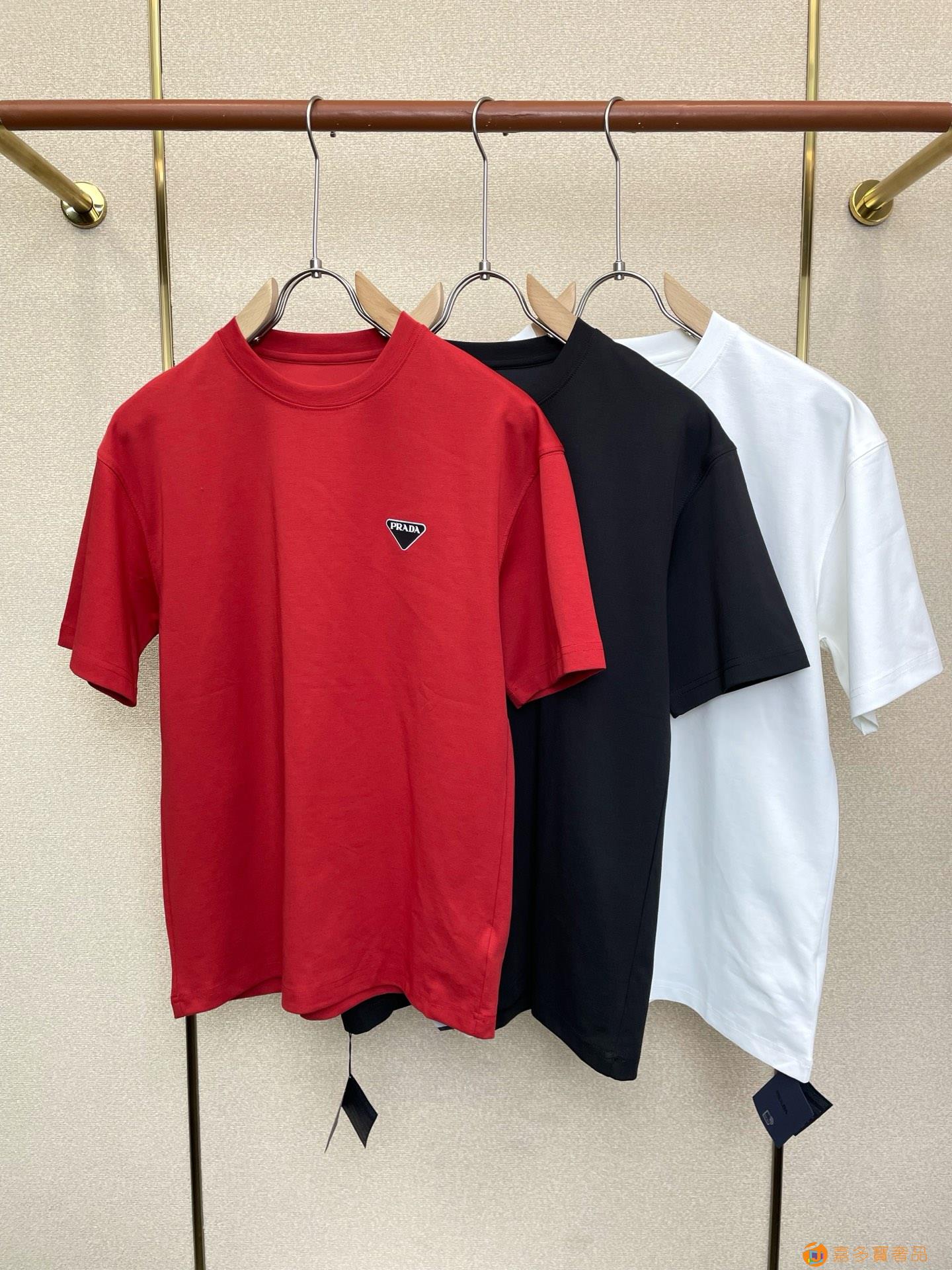 普拉达 ?顶级货品高克重?夏季新品首发专柜最新款短袖圆