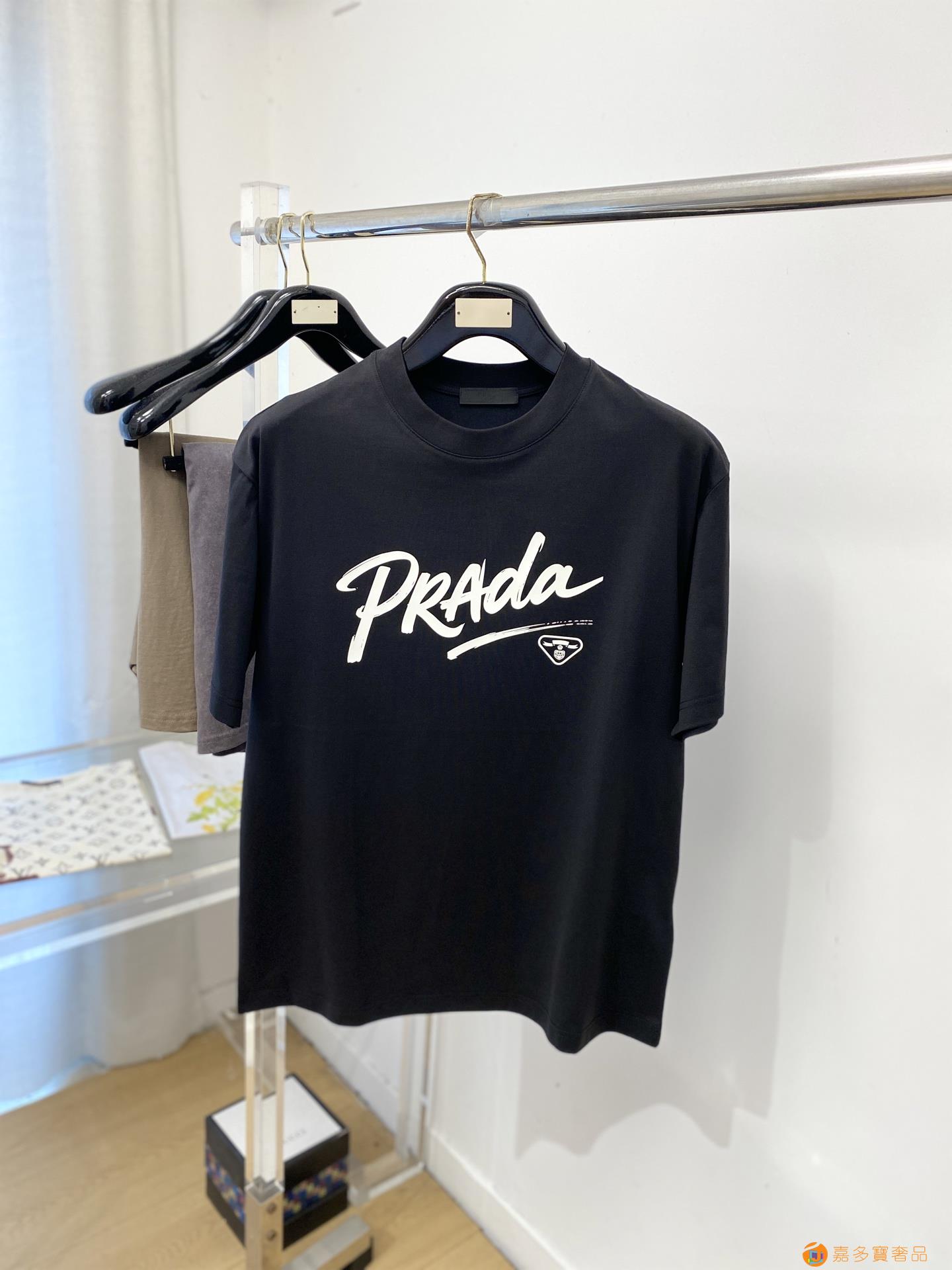 普拉达、新品短袖T恤,帅气时尚,简约百搭款。胸前顶级印胶字母