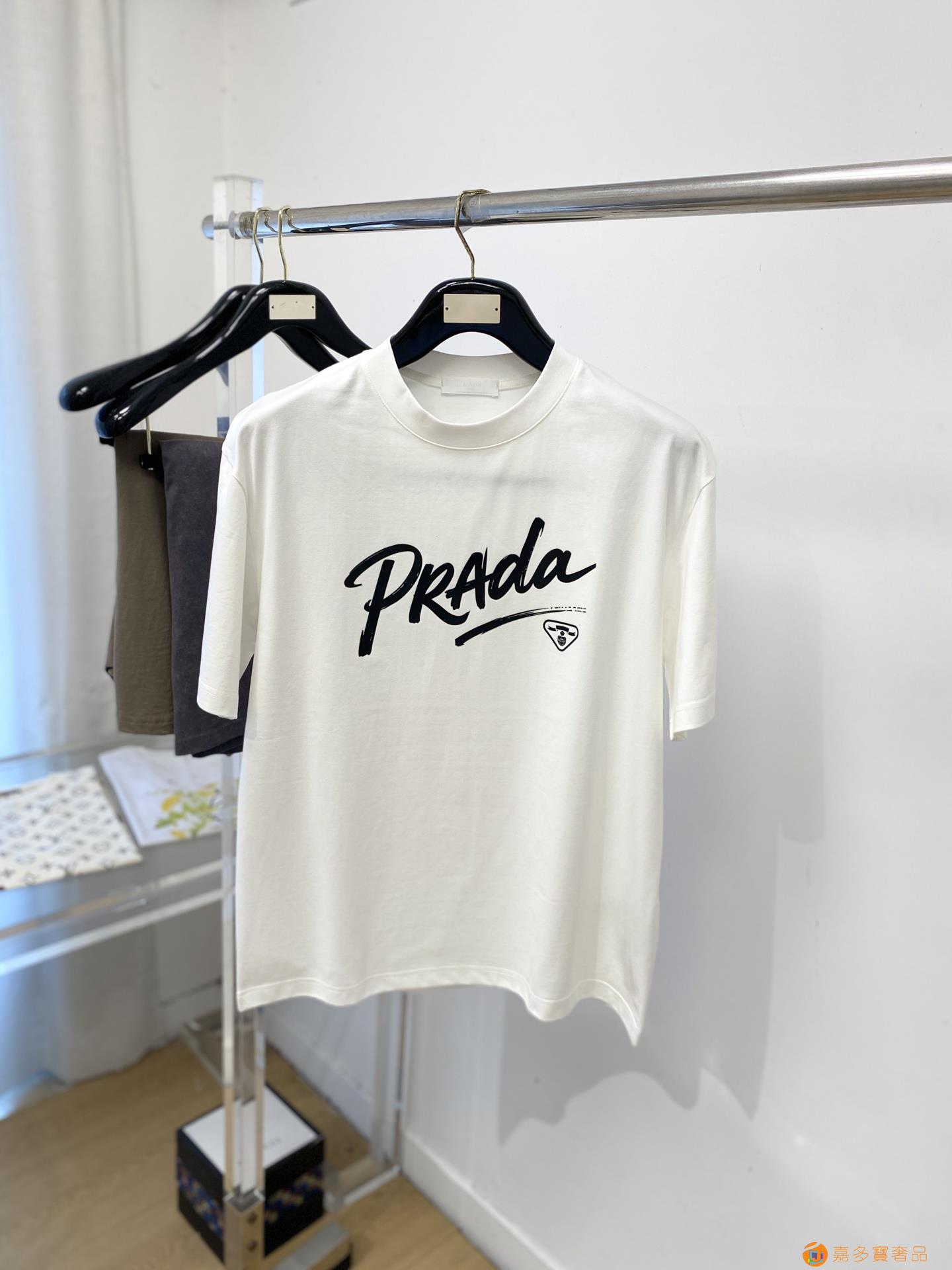 普拉达、新品短袖T恤,帅气时尚,简约百搭款。胸前顶级印胶字母