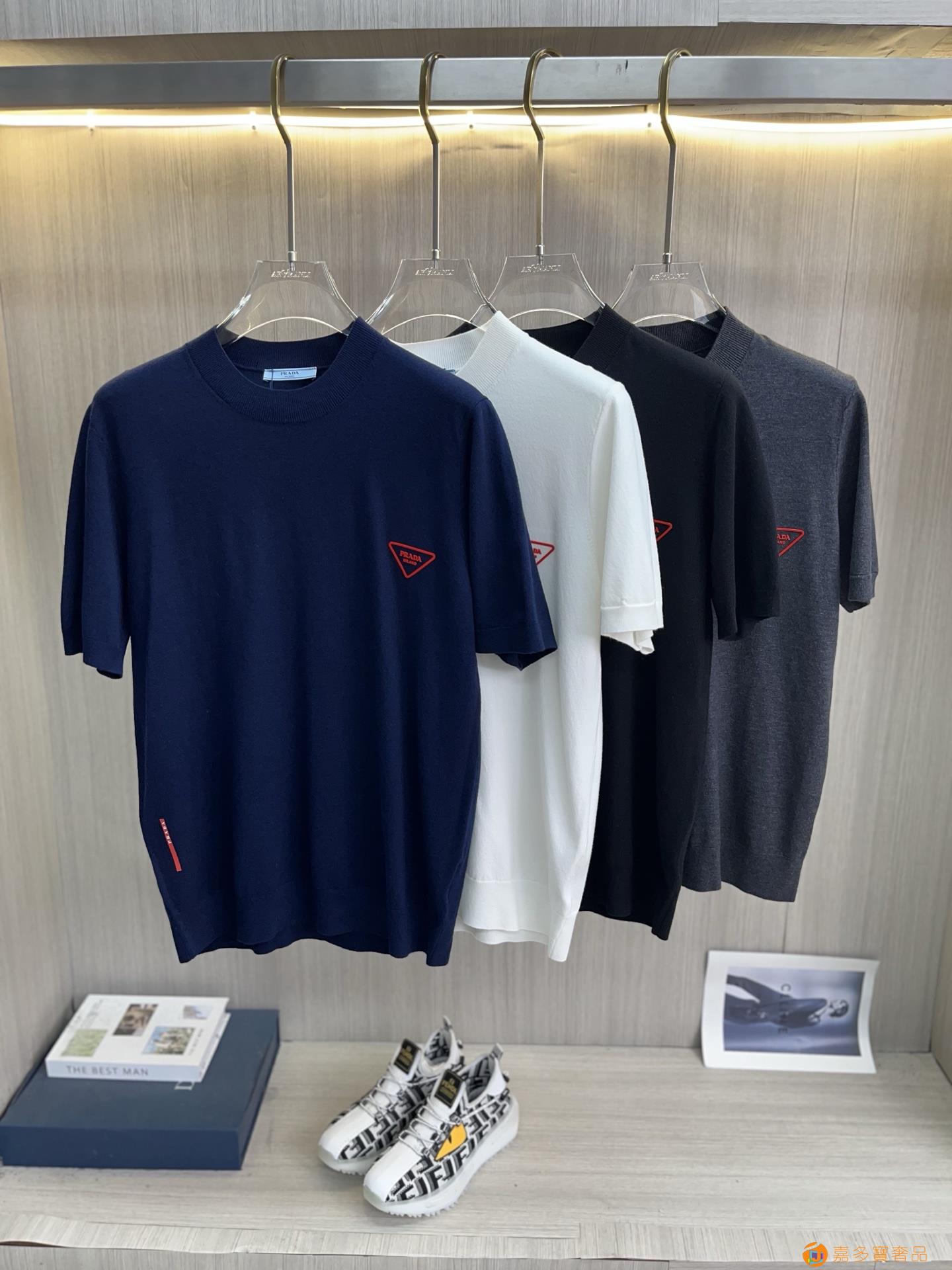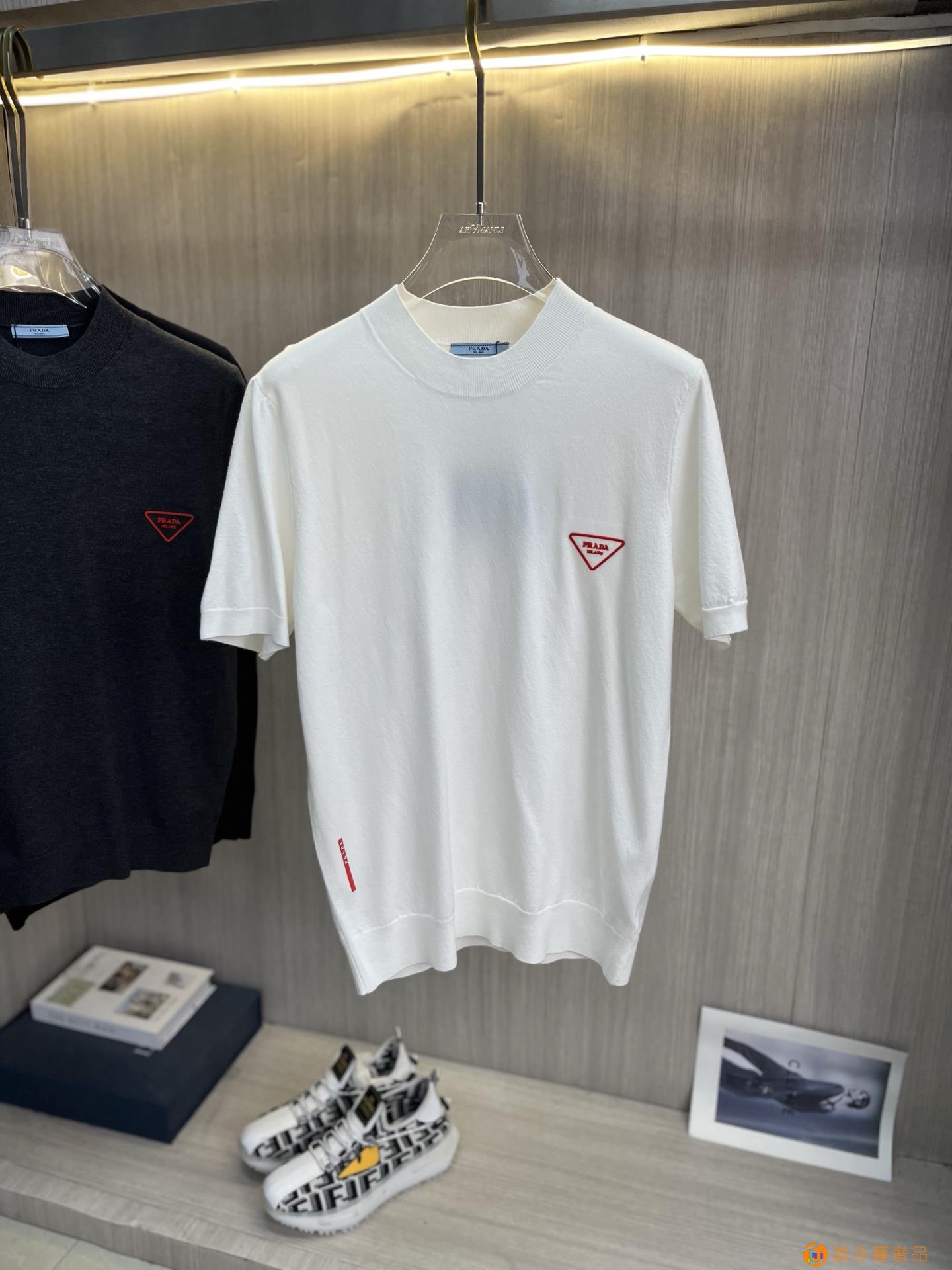 普拉达 ?顶级货品高克重?夏季新品首发专柜最新款短袖圆领