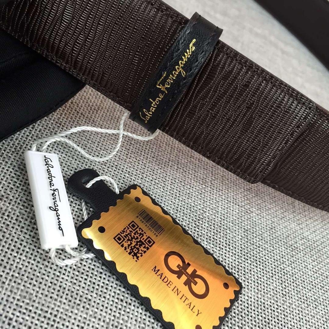 菲拉格慕 进口头层小牛皮压菲拉格慕马蹄印搭咖啡色 皮带