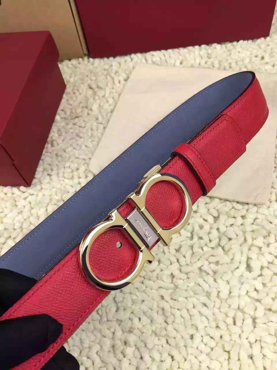 菲拉格慕采用双面进口皮,平纹牛皮面,油边精致皮带