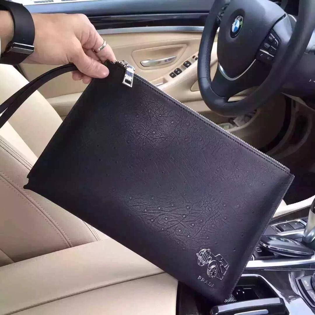 PRADA 最新款男士手包 采用顶级意大利进口牛皮鸵鸟纹