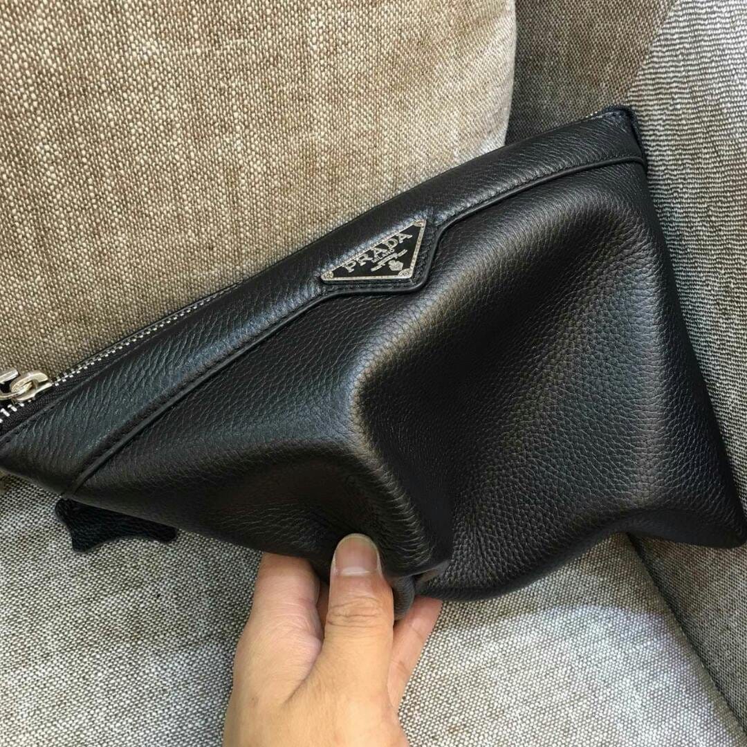 普拉达 8012 官网新款手抓包 黑色克头层荔枝纹(压摔)