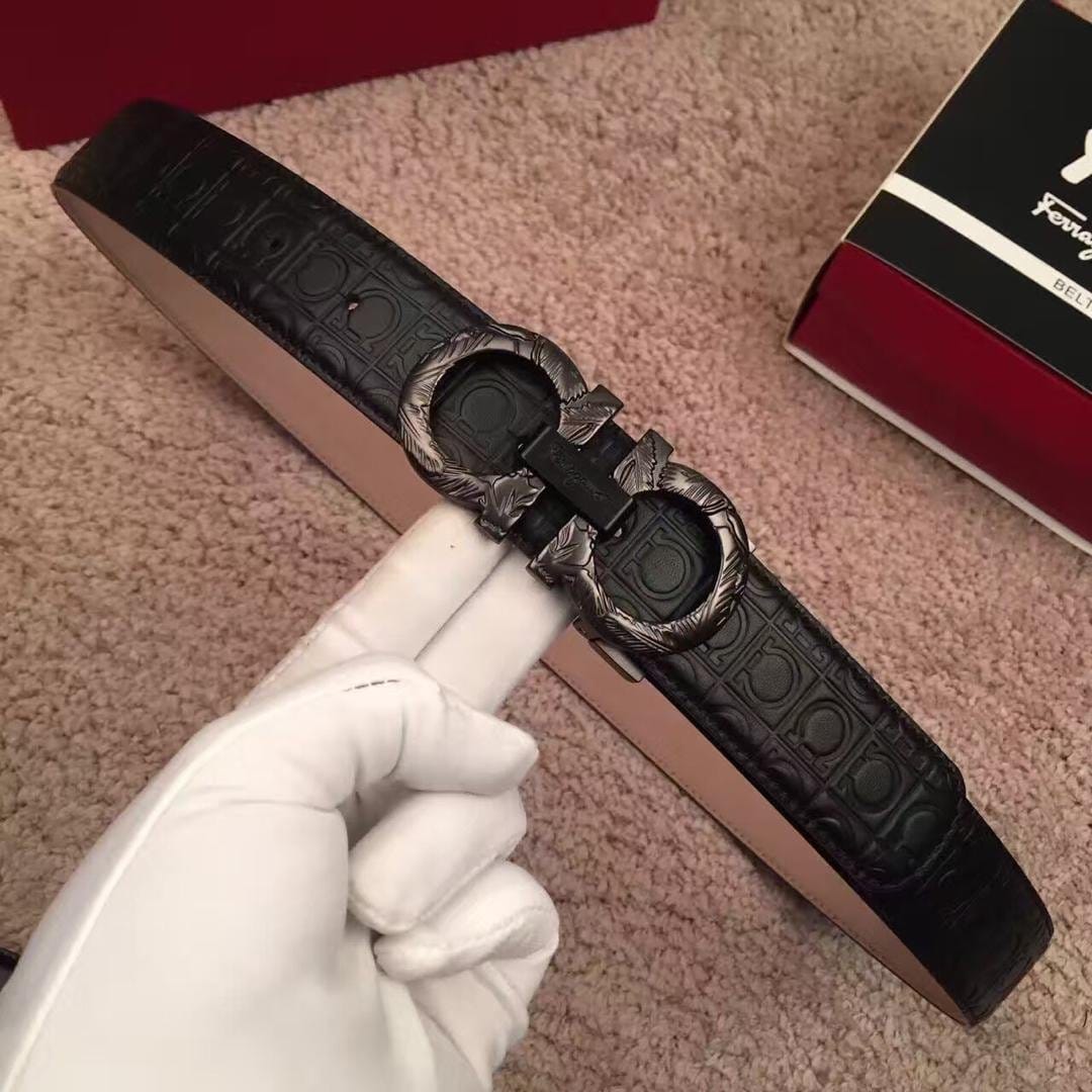 菲拉格慕 经典系列、两面顶级头层小牛皮 配上经典花纹男士皮带
