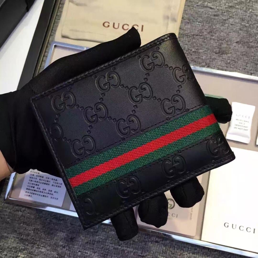 Guccissima 短款经典织带压花牛皮钱夹 黑色/咖啡色
