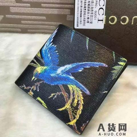 GUCCI 424892 官网首次发行 面料经典防水 简单按扣花鸟钱夹