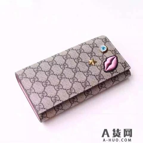 GUCCI 大眼萌系列钱包 正品刺绣嘴唇 配正品布纹牛皮