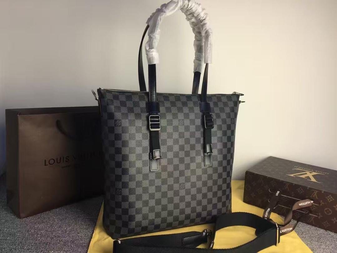 LV N41248 黑色格子压花 小牛皮饰边男士公文包(配件带)