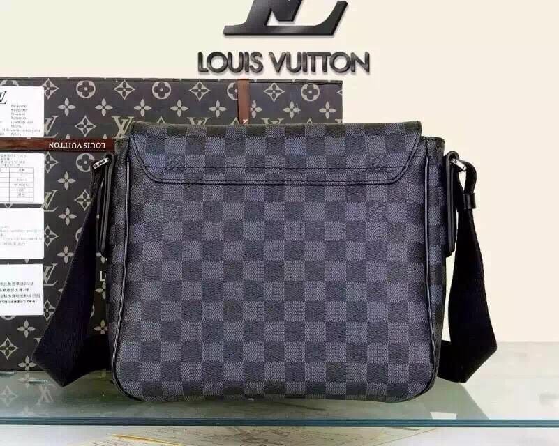 LV N41260 原版PVC配头层牛皮 经典黑格男士斜挎包