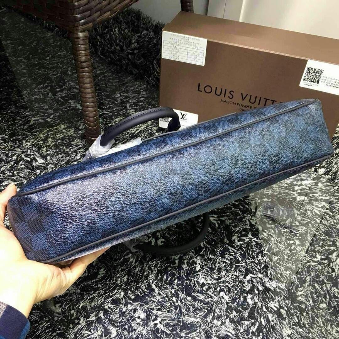 LV 高档蓝格 原版开模 双向拉链男士手提包