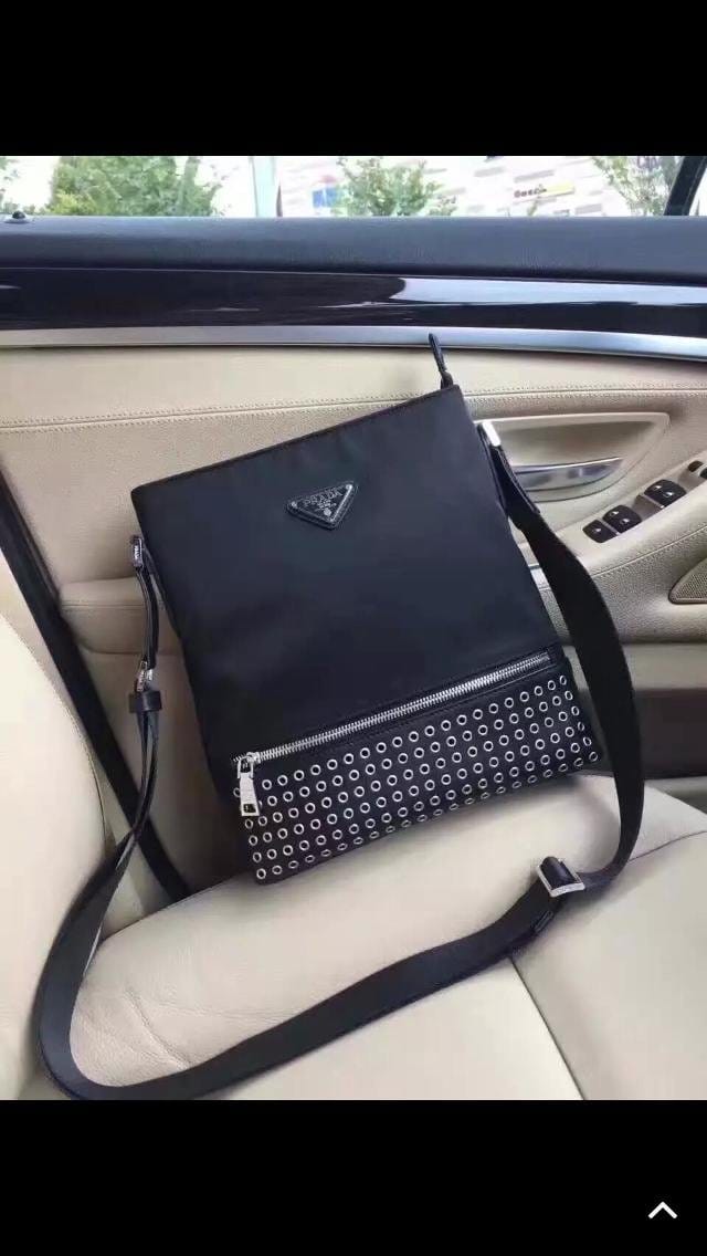 普拉达 韩国进口尼龙布配小牛皮 黑色休闲男士单肩斜挎包