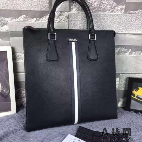 普拉达 真空电镀五金 高档男士手提包