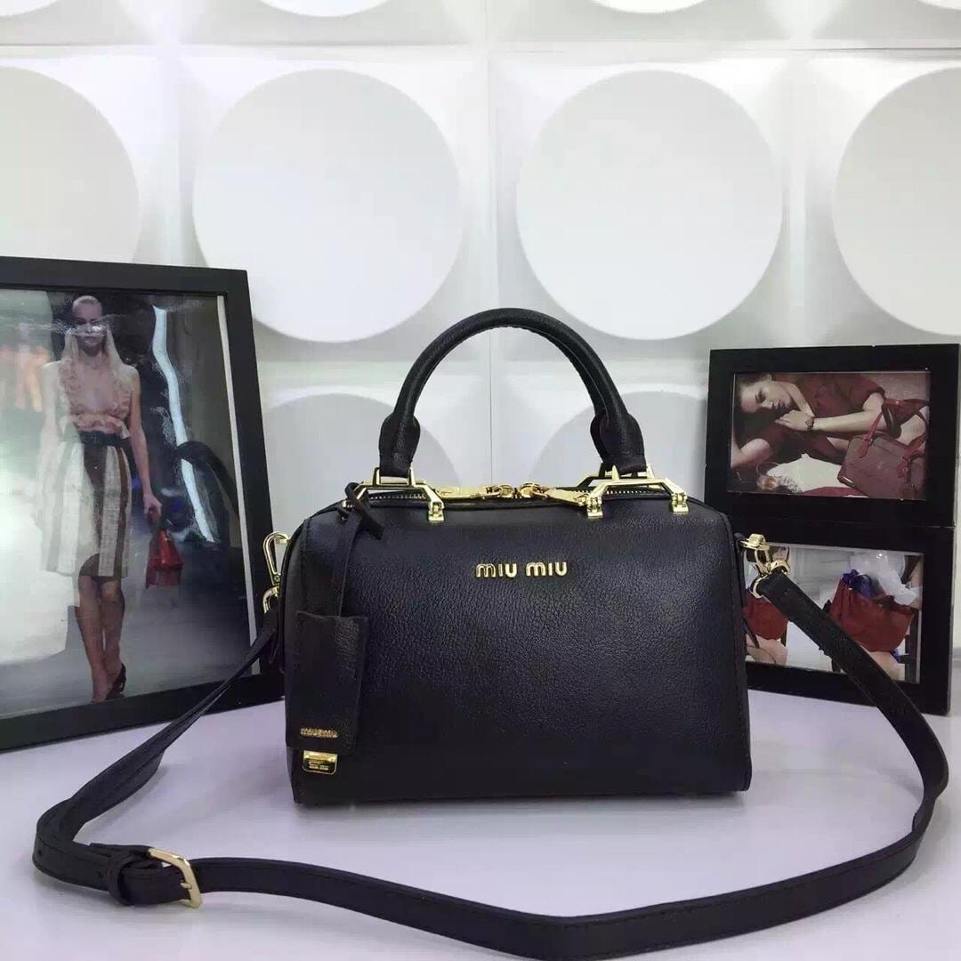 MIUMIU 1033黑色 山羊纹牛皮 简单大方女士枕头包(配肩带)