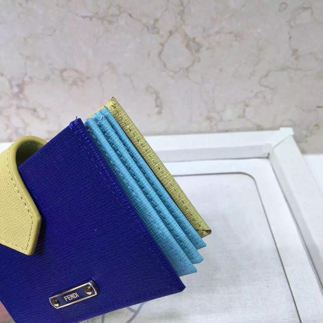 FENDI 0301 拼色卡片夹 掌纹牛皮 精美LOGO卡包