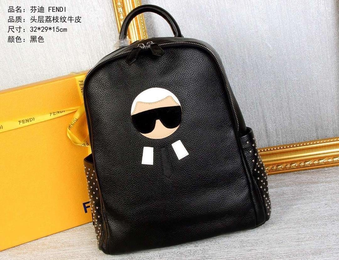芬迪 6688 小怪兽双肩背包 头层荔枝纹牛皮