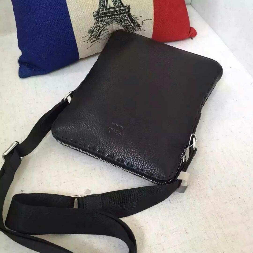 芬迪 2016最新款 简约小牛皮男士单肩斜跨包