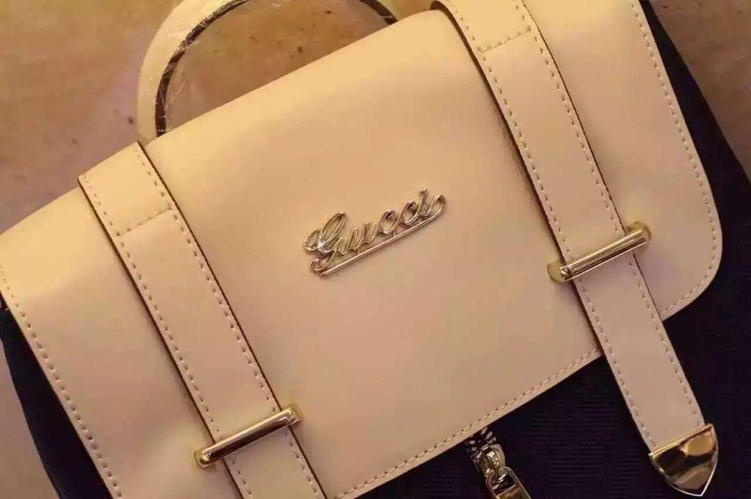 Gucci 350880红/蓝布白皮 大容量多背法女士双肩包