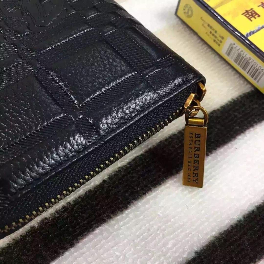巴宝莉 2436黑色 原版牛皮 压花格超大容量男士手包