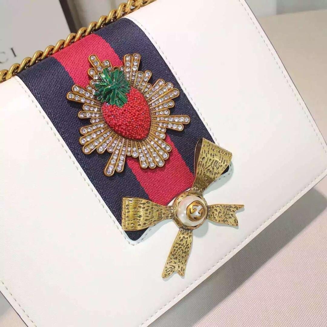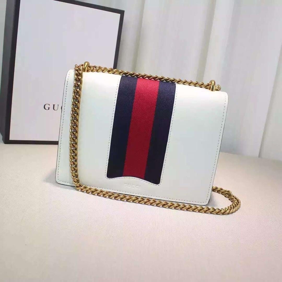 Gucci 432280白色全皮黑色真皮 女士斜挎包