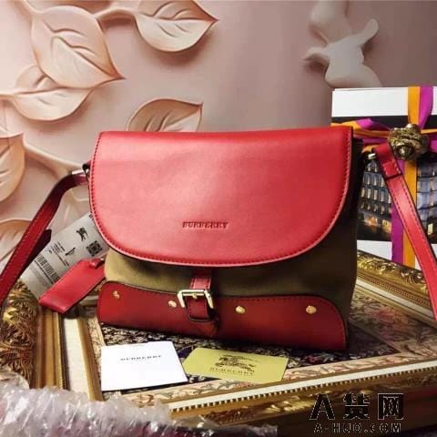 巴宝莉 8855大红 原版牛皮配格子布 2015最新女款斜挎包