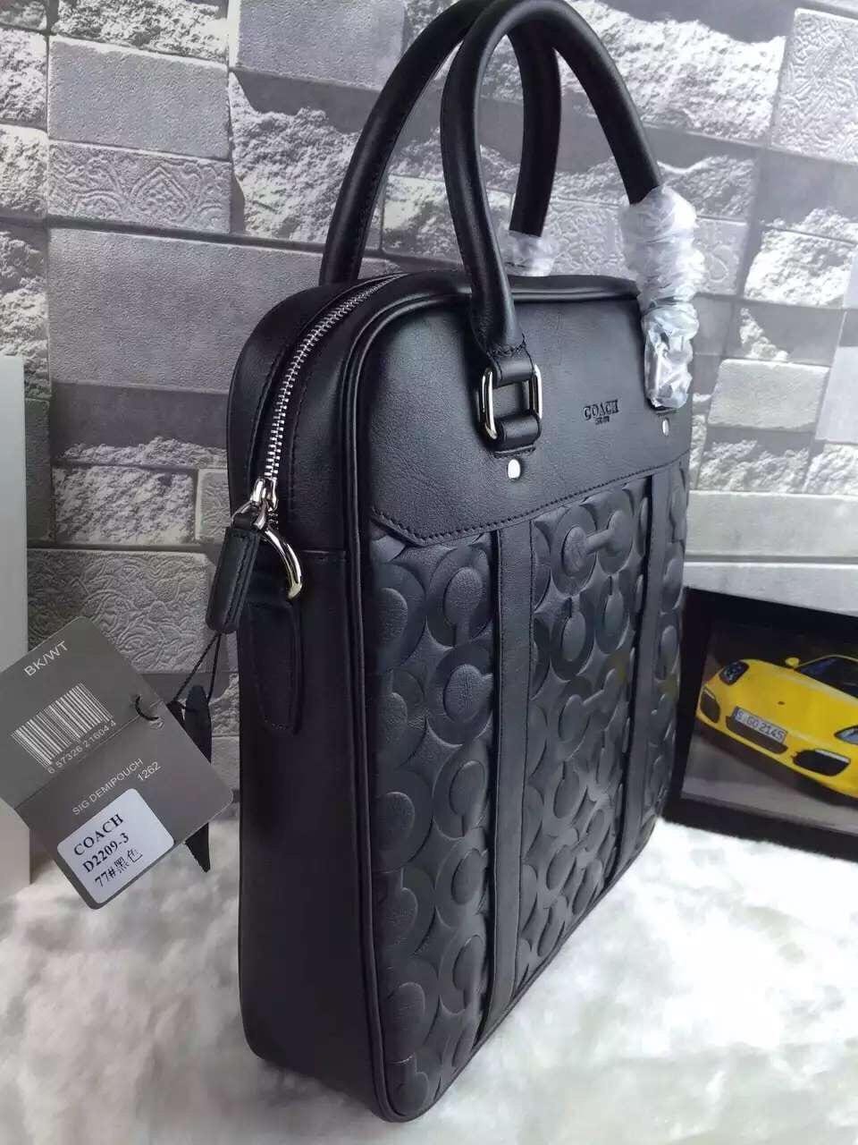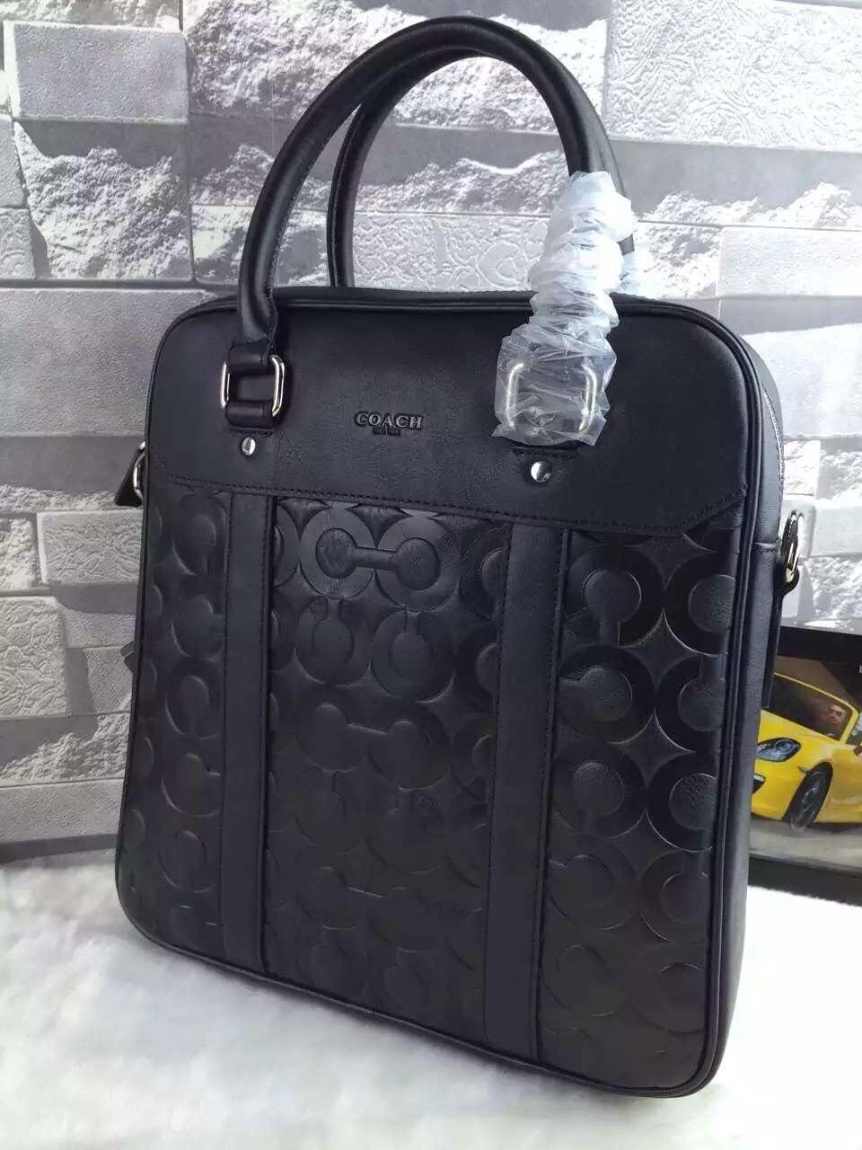 蔻驰 真皮压C 黑色爆款男士休闲商务手提包