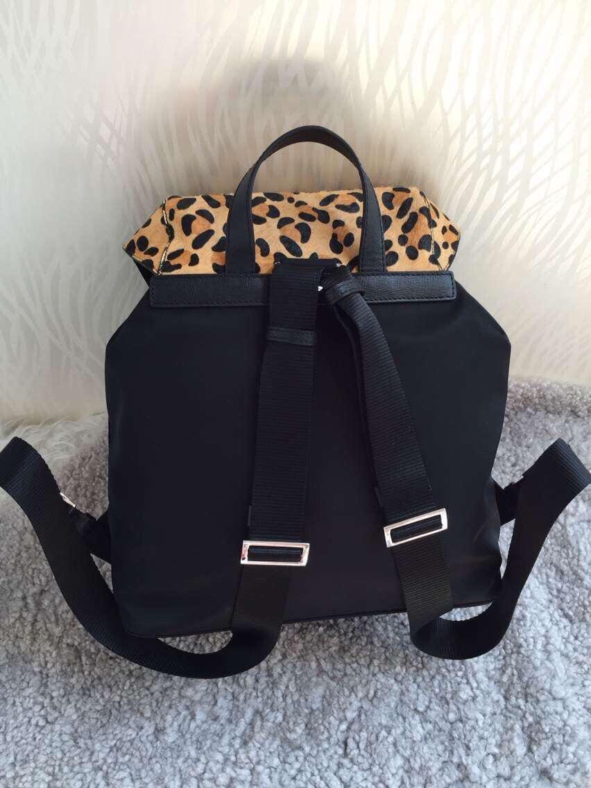 采用进口尼龙降落伞布料配豹纹皮, 搭配银色扣五金!!?尺寸:30*15*32。