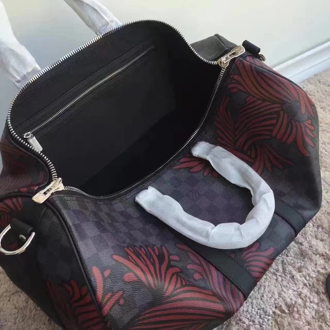 原单品质 Josh麻绳系花纹Keepall45cm旅行袋,Damier Graphite帆布精工细作而成,新版旅行袋配有多个提握舒适的皮革手柄,宽敞轻便,可脱卸的肩带,配有肩垫使携带更加舒适!全钢五金!Size:45*27*20cm 实拍图 点赞