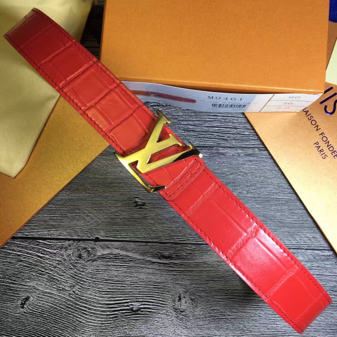 LV M9461 双面意大利头层鳄鱼纹牛皮 3.0宽女士挂扣皮带
