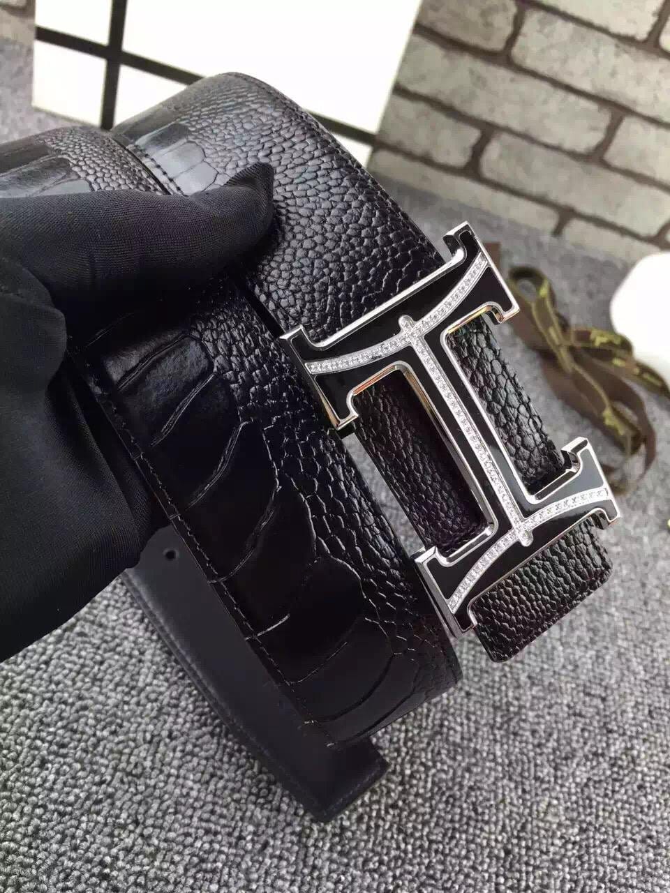 爱马仕 牛皮制作压鸵鸟脚纹 高端男士皮带