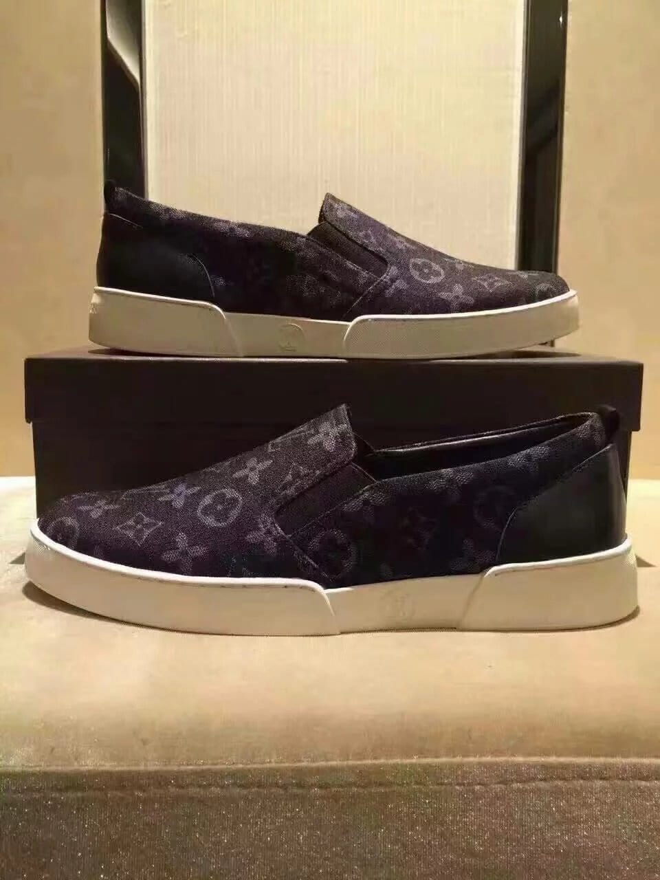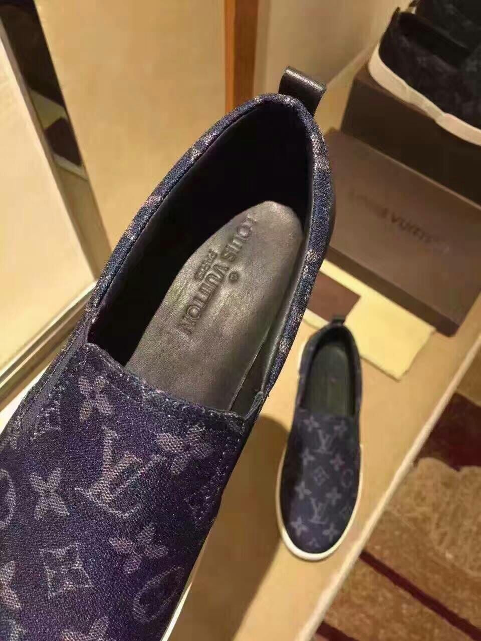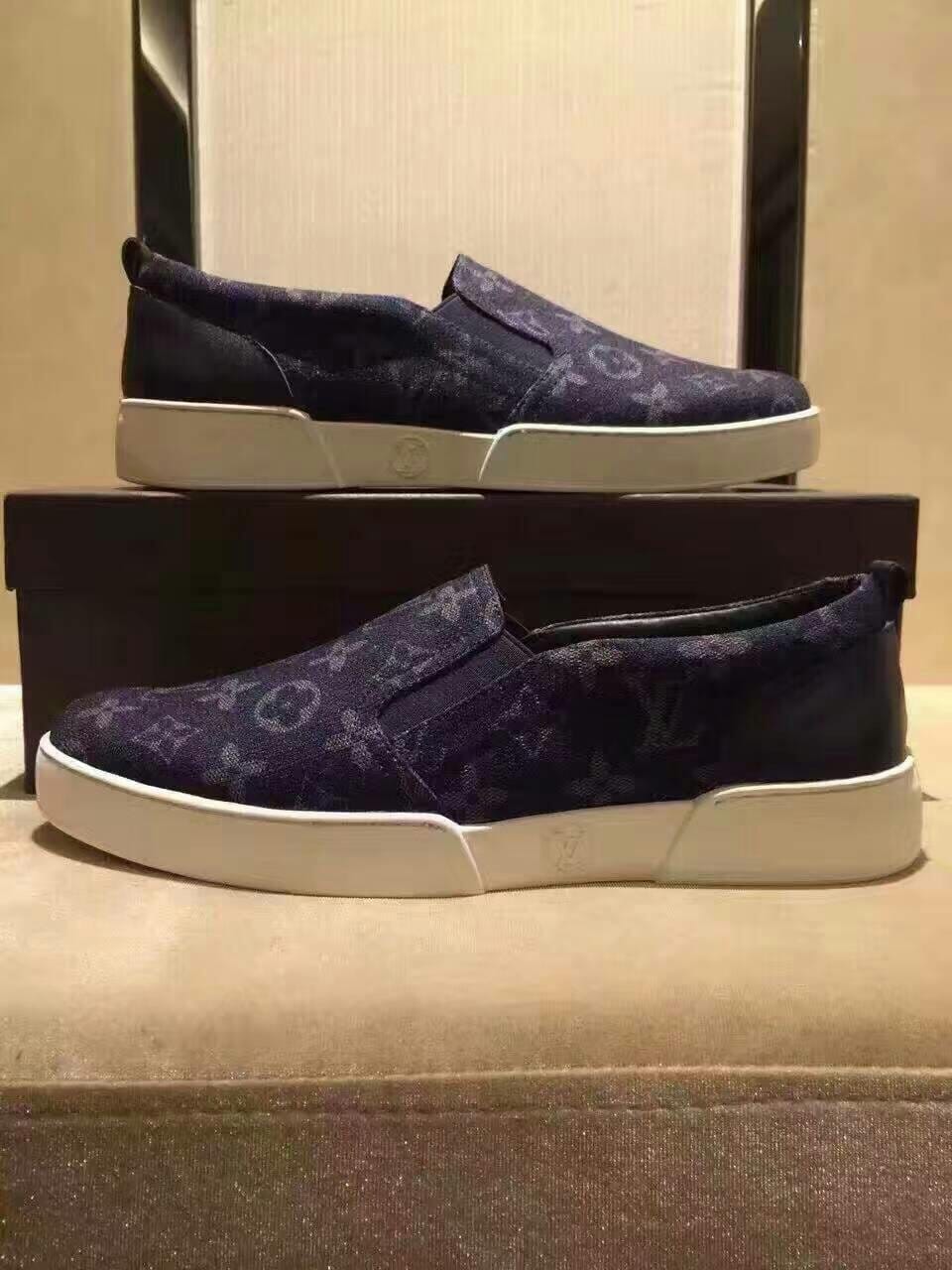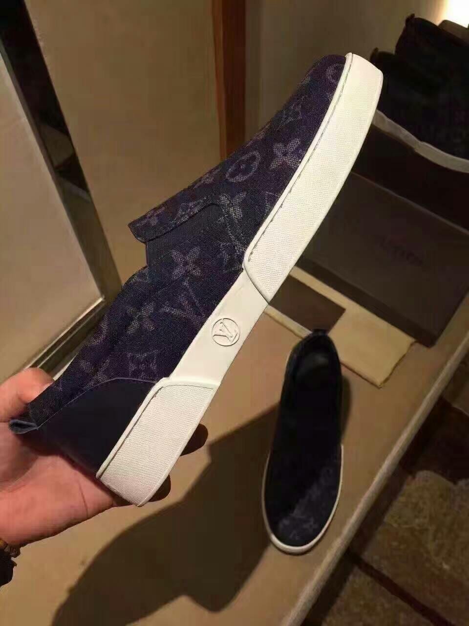 {LV}顶级 男士印花系列 意大利进口牛皮原厂印花牛仔布,全进口牛皮脚垫 ,完全1比1复刻 鞋底:原厂特供原版底,独家活动成型底超级舒适, 原厂跟单货, 高品质,可随意进出专柜,欢迎对比,黑、宝蓝两色可选 标准码数:38-44