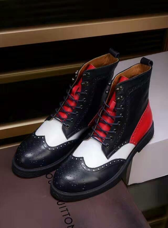 {LV}2016秋冬系列 原版复刻男士潮靴,本人香港原版买来复刻出品 双色给您两种截然不同的体验 鞋面进口小牛、原版压花工艺、进口水染内里,原版五金开模适,原版复刻大底,尽显低调奢华 标准码数:39-43(38、44可订做)