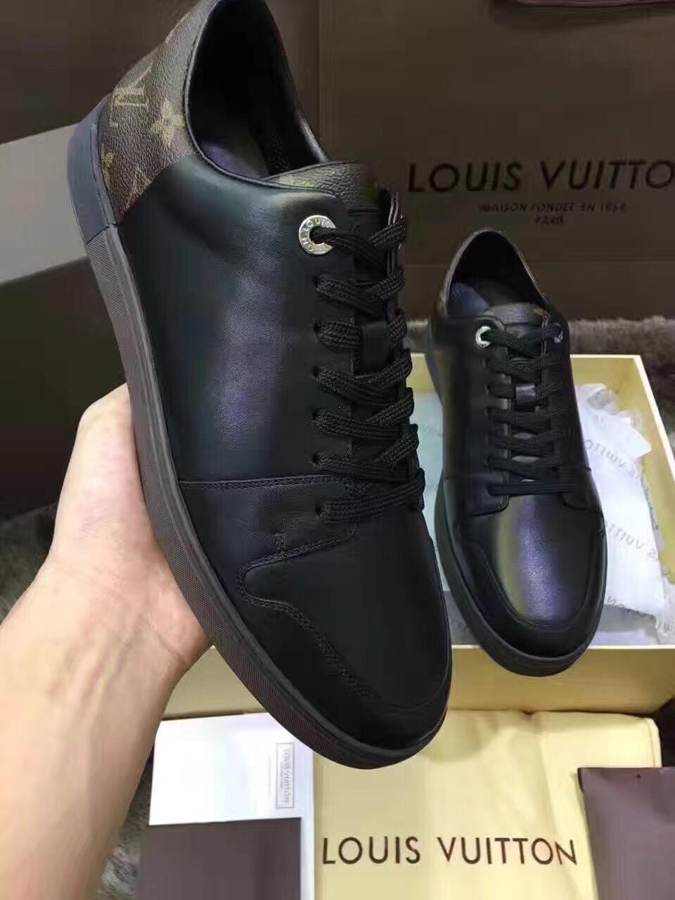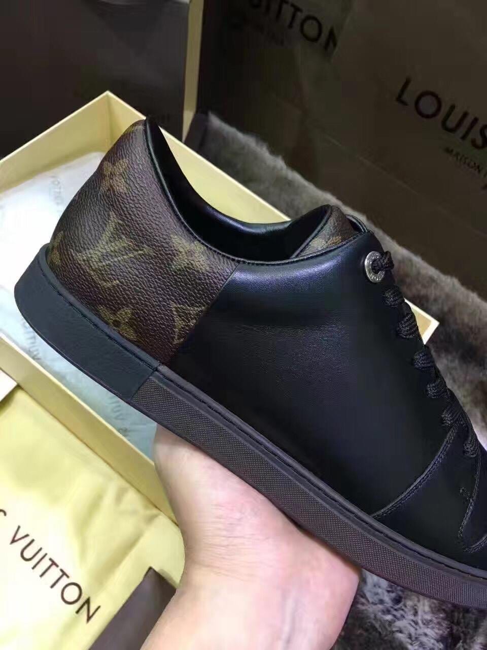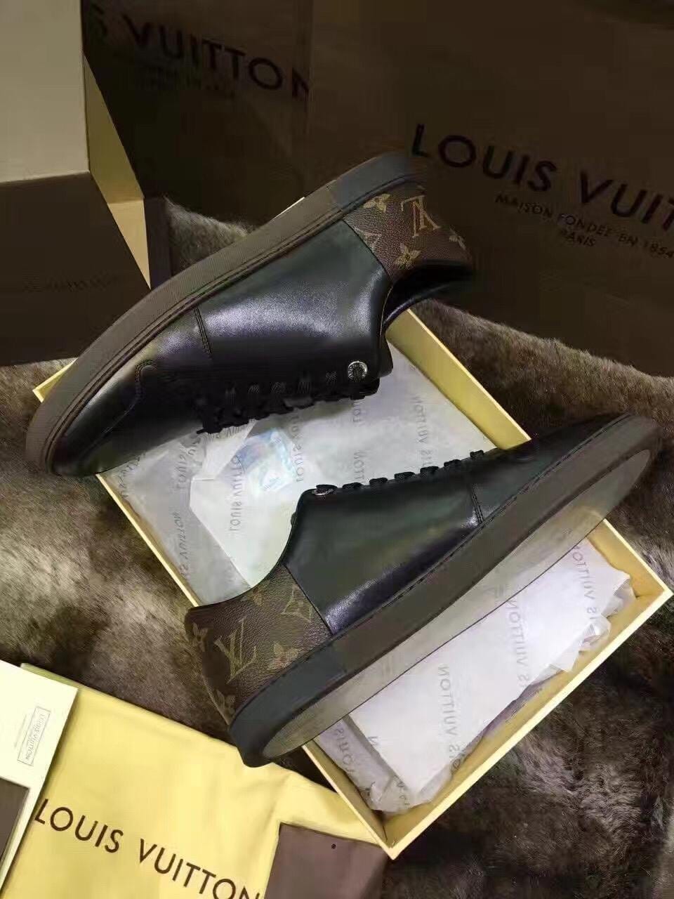 {LV}2016专柜最新款!市场最高版本!高端精品~原版质量 更是征服全球人士标志性 此款男士休闲鞋,采用原版进口牛皮'特色黑格多种材质拼接而成,简洁干练的外形设计,整个系列以高档黑为主搭配经典logo 标准码数:38-44