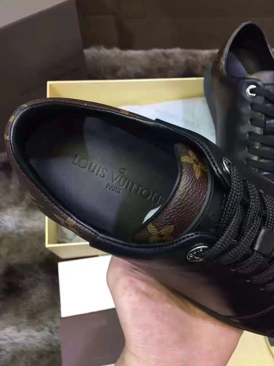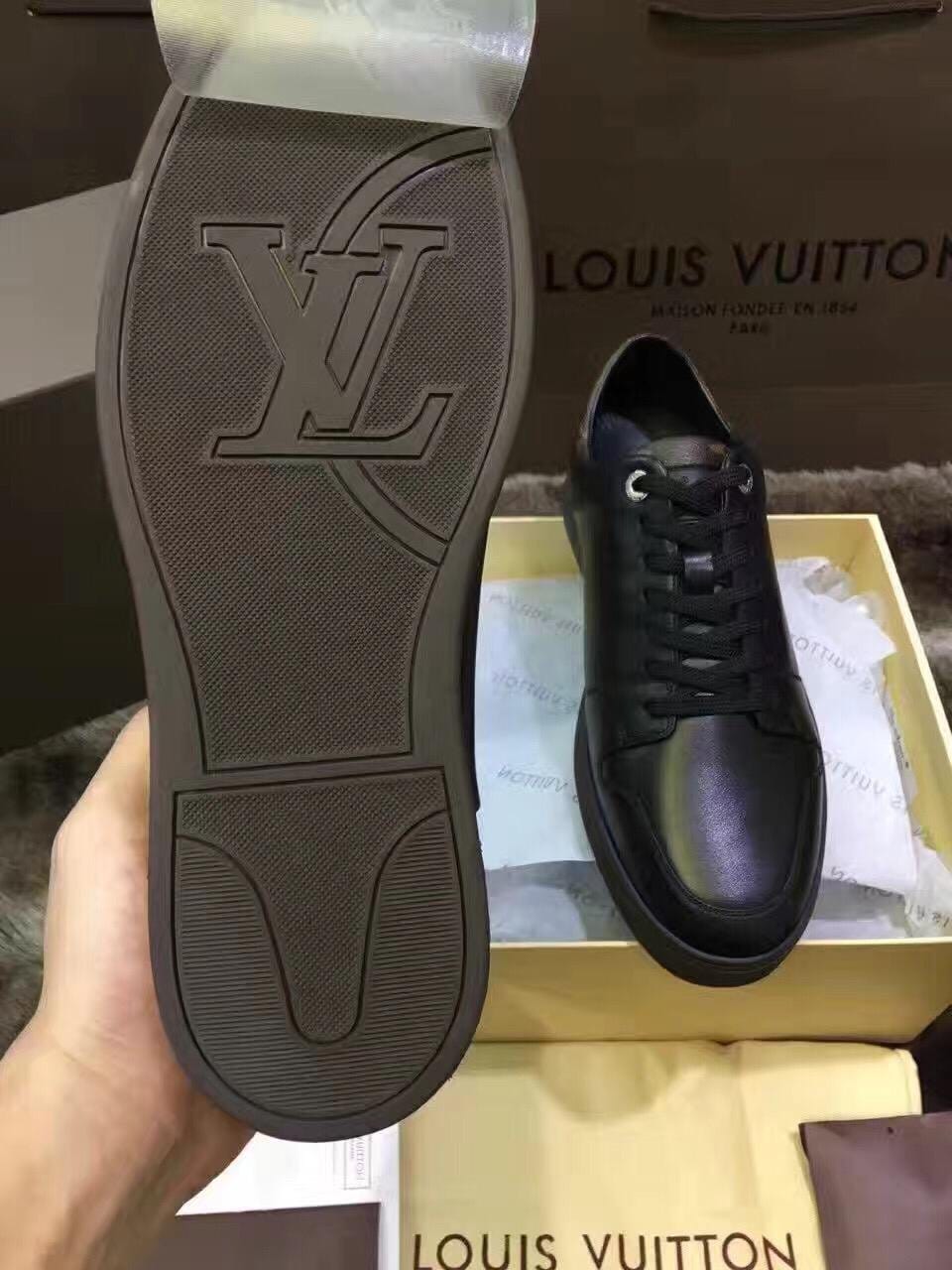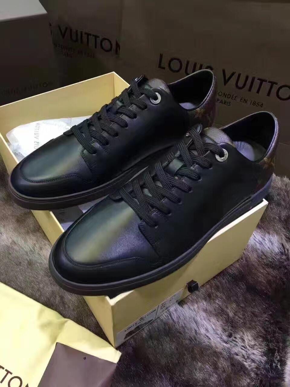 {LV}2016专柜最新款!市场最高版本!高端精品~原版质量 更是征服全球人士标志性 此款男士休闲鞋,采用原版进口牛皮'特色黑格多种材质拼接而成,简洁干练的外形设计,整个系列以高档黑为主搭配经典logo 标准码数:38-44
