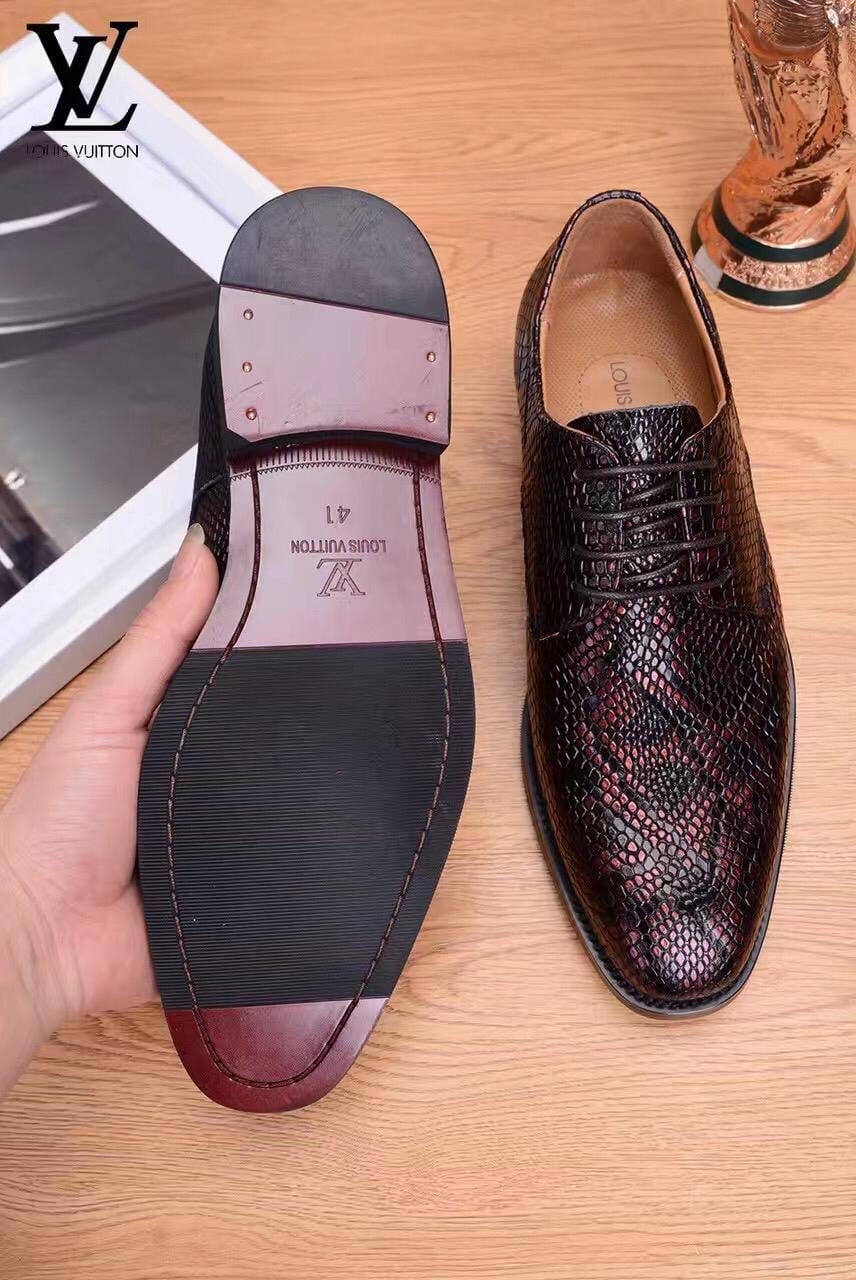 {LV}官网同款蟒蛇纹皮鞋 作为时尚界的活跃一族,以大胆创新为本色,为年轻时尚男士打造出这款休闲商务风格皮鞋,采用进口牛皮 羊皮内里 原版橡胶大底 标准码数:38-44