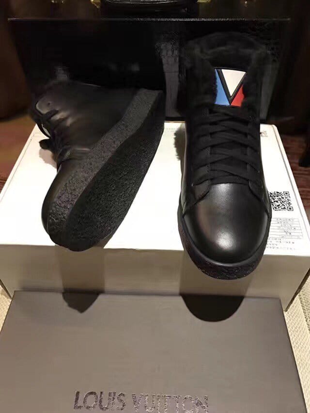 LV 男士采用头层反绒牛皮加绒高帮鞋
