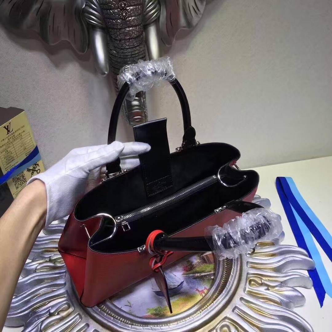 LV 粒面Epi皮革 搭配旅行贴纸刺绣粒面皮革内衬 银色金属配件斜挎包