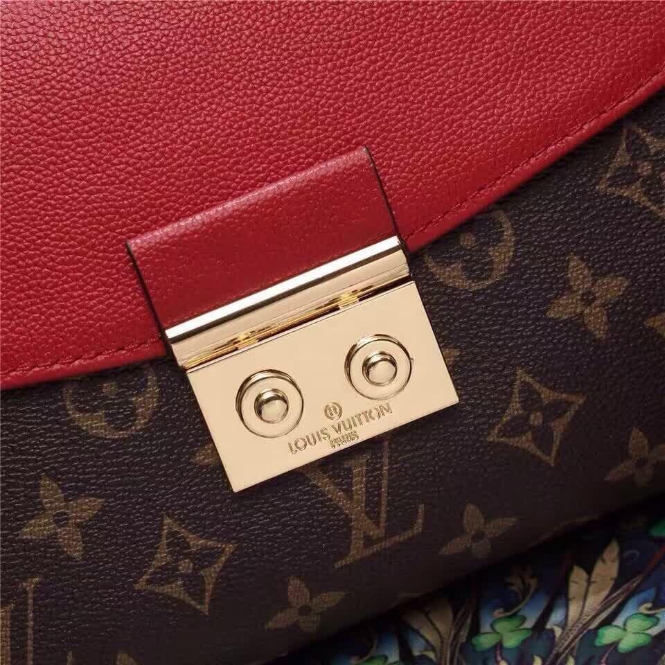 LV 41815官方春夏款柔软的头层皮标志性的LV扭锁设计女士双肩包