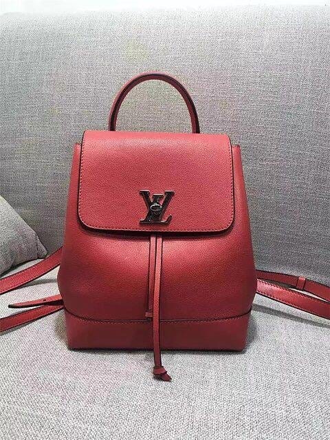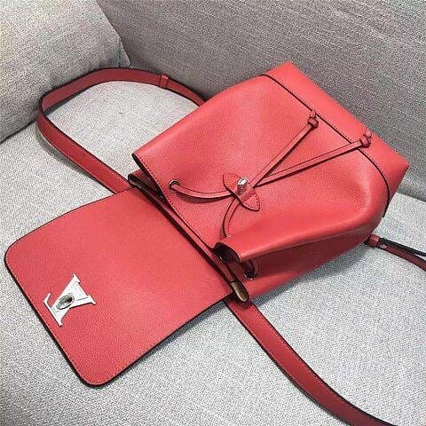 LV 41815官方春夏款柔软的头层皮标志性的LV扭锁设计女士双肩包