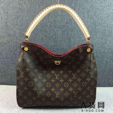 LV 41620红色全皮配老花 变色皮,超纤里布女士手提包