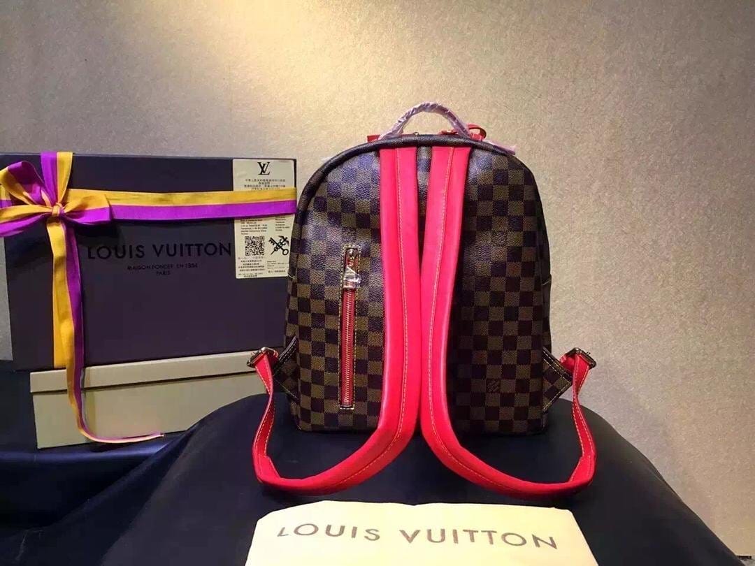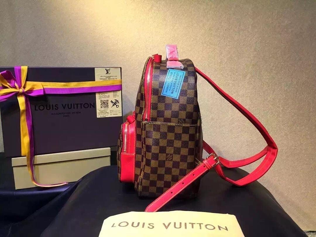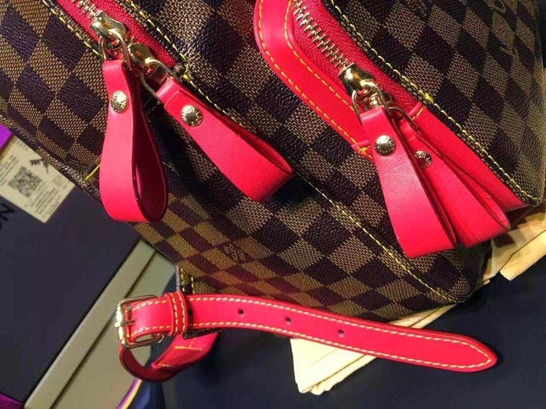 LV 41620红色全皮配老花 变色皮,超纤里布女士手提包