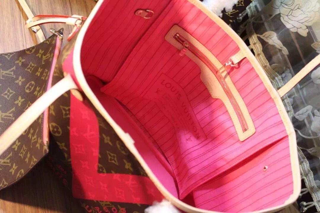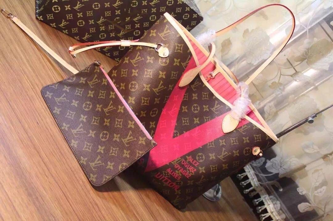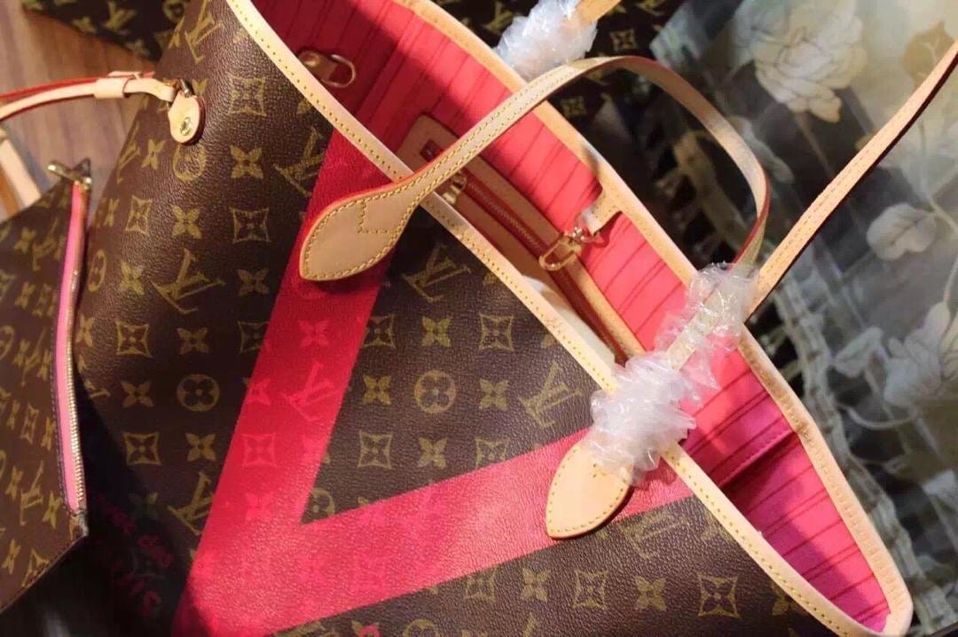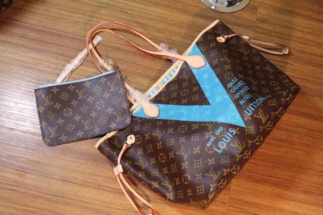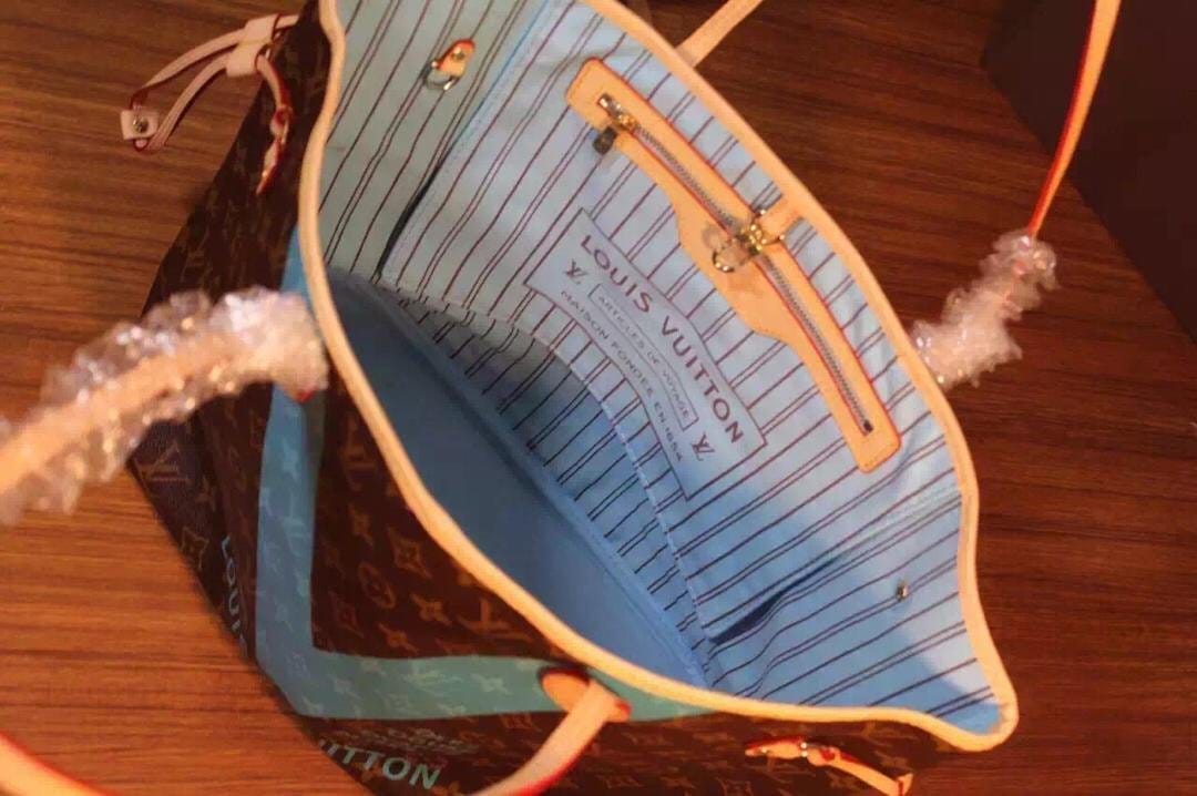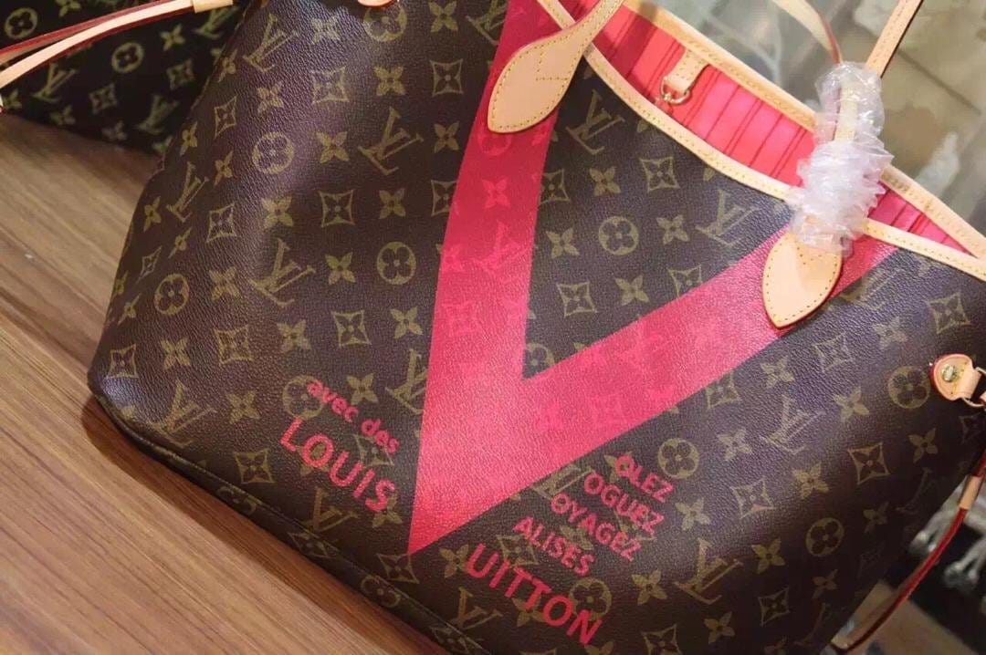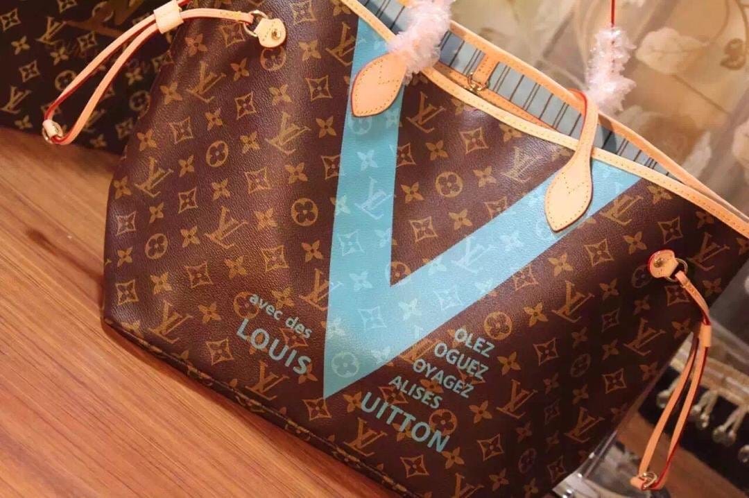 最新lv款丝印回货,火爆来袭顶级货,黄皮制作Neverfull 中号手袋的设计灵感源自路易威登20世纪60年代的一则著名广告。 Mongram 帆布将时尚的“Volez, Voguez, Voyagez avec les Valises Louis Vuitton“印花图案轻松混搭。尺寸:32**29**19 cm
