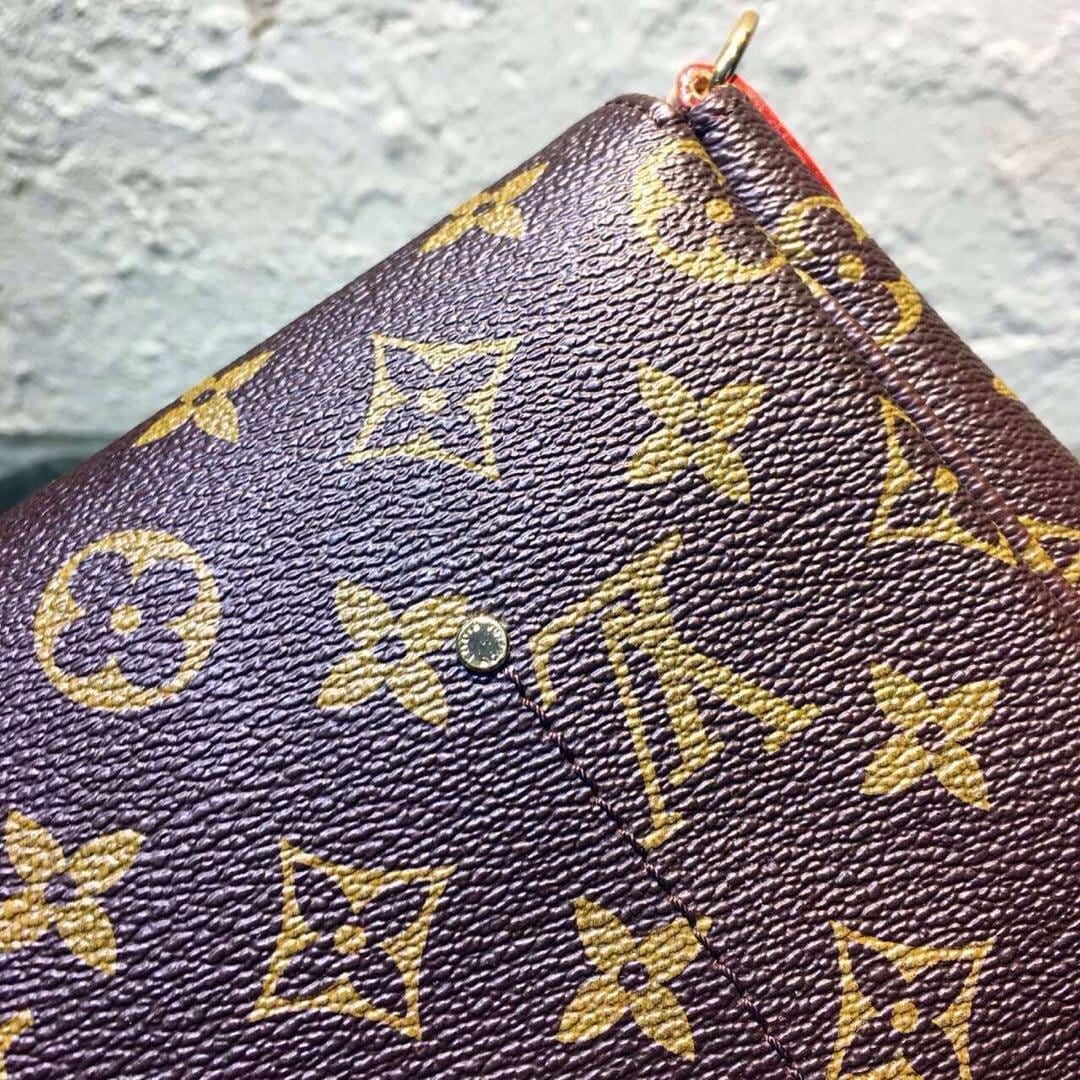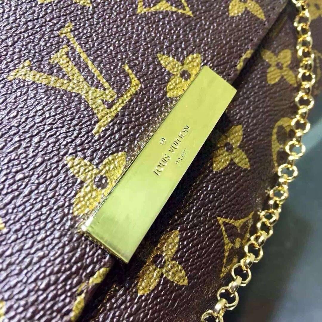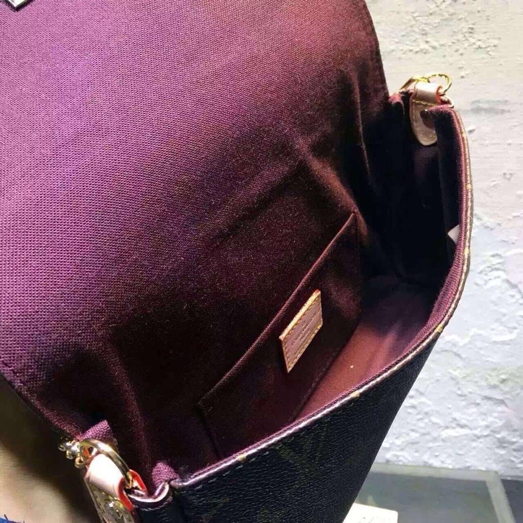 LV M40718磁铁吸附搭扣黄铜配件 .天然小牛皮饰边女士单肩包
