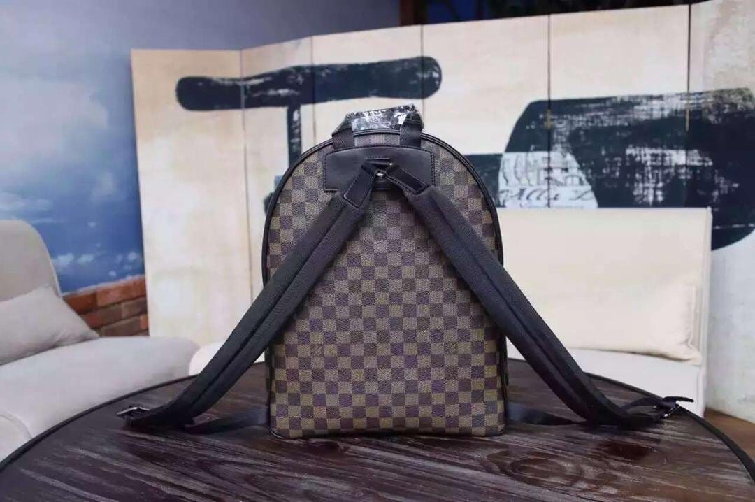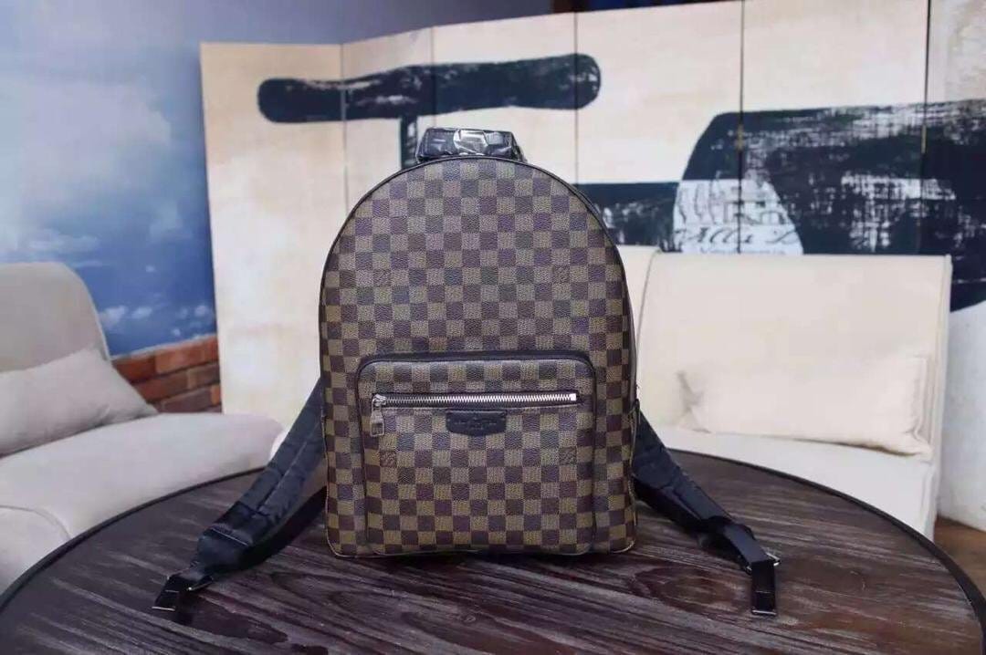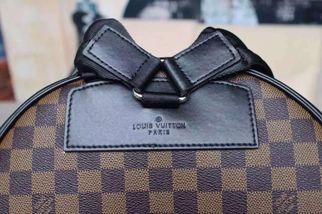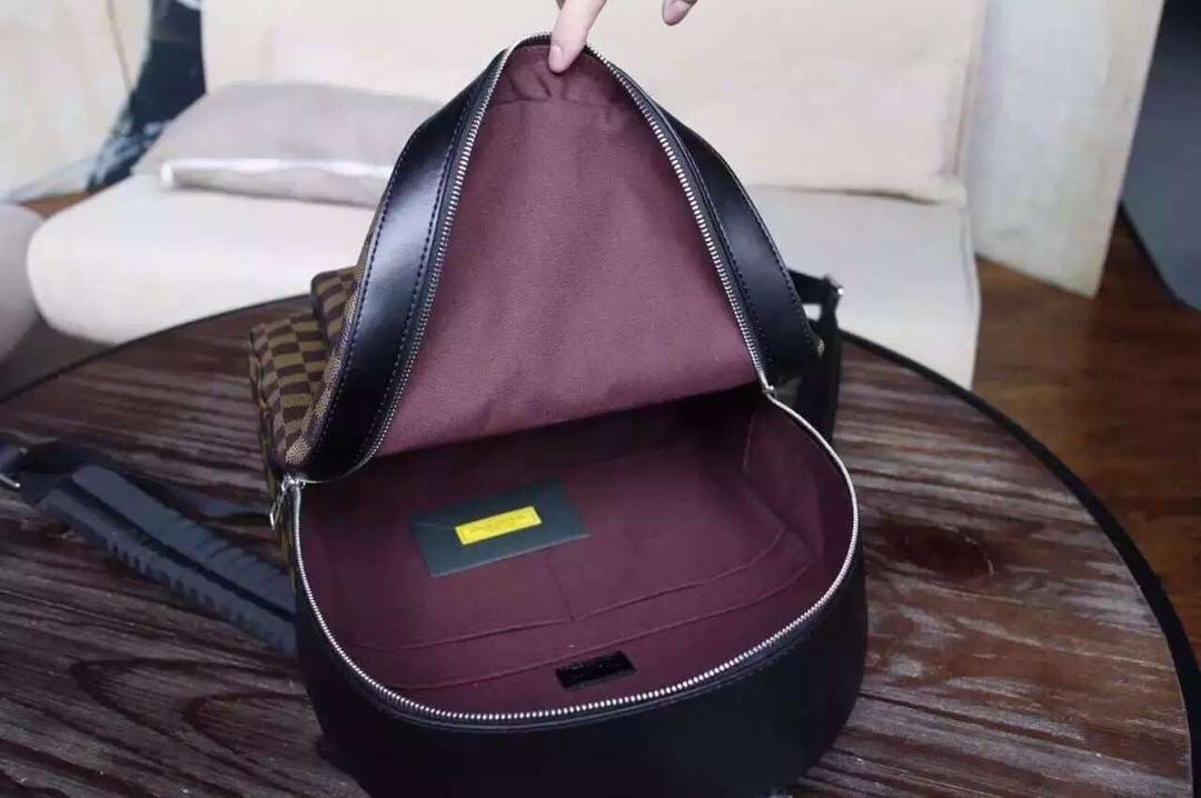 LV 格子 织物内衬 银色金属配 件顶部手柄 女士双肩包