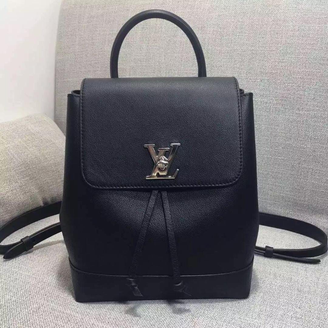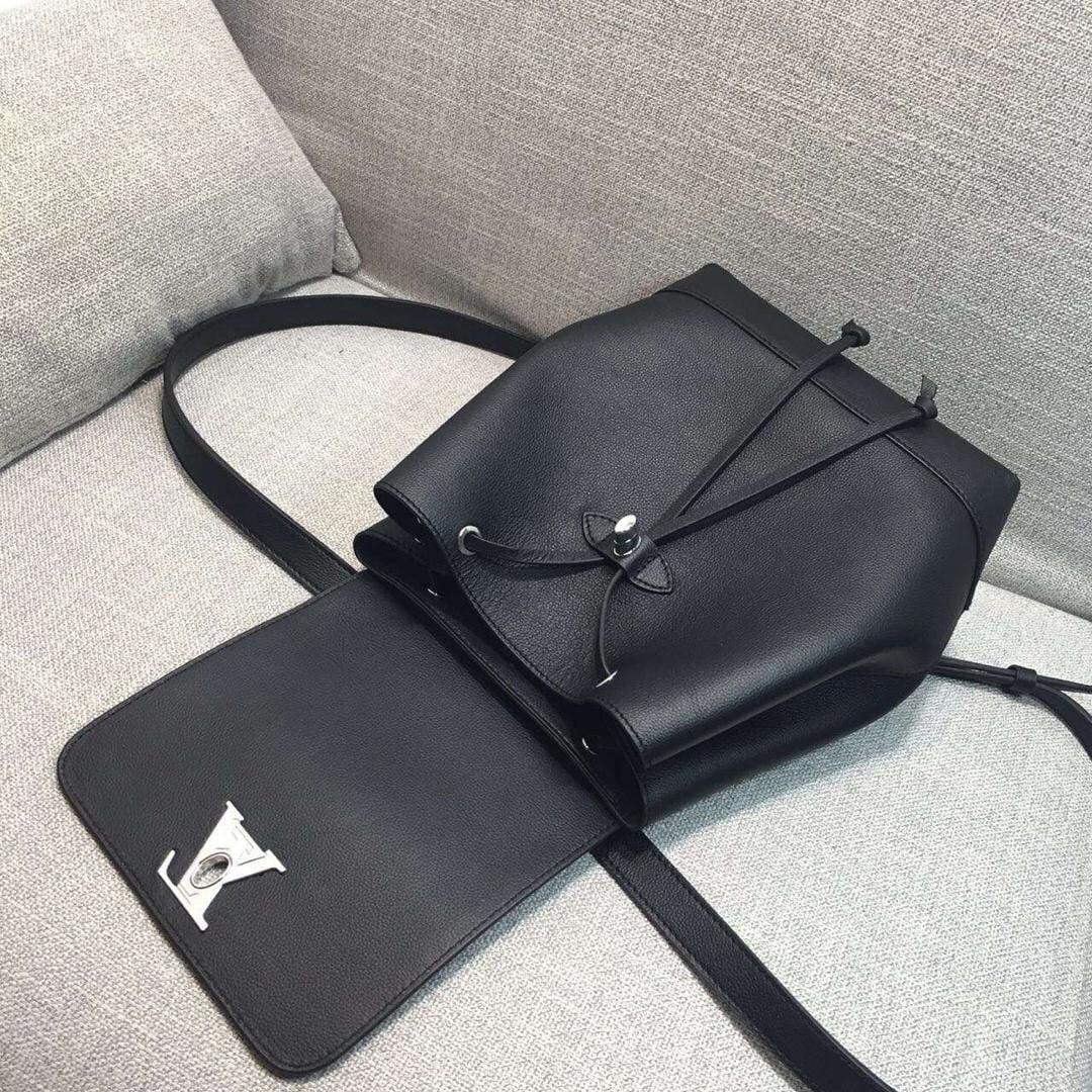 LV 涂层帆布 天然牛皮饰边 织物内衬 女士双肩包
