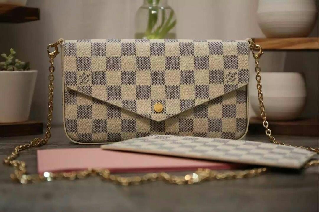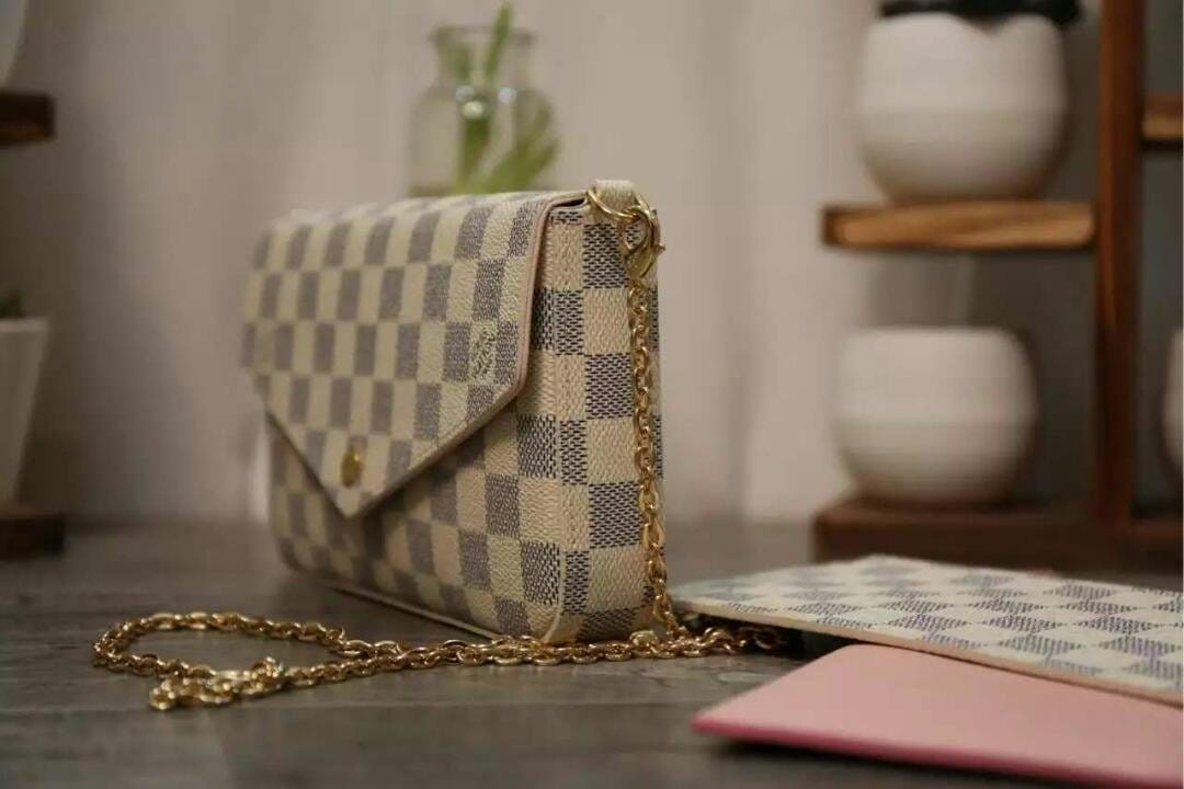 LV N63016 小牛皮饰边 织物内衬闪亮的金色金属配件肩包