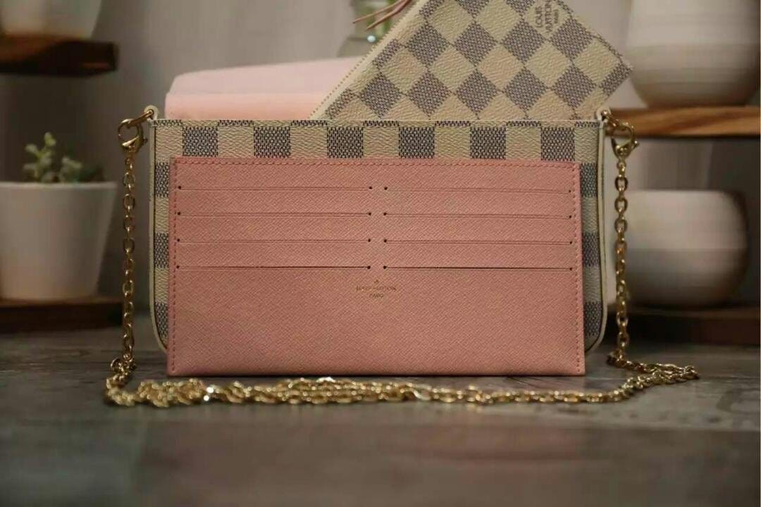 Felicie手袋优雅华贵,内含两个可脱卸口袋,是携带整理您的日常用品的时尚之选。它不仅仅是款钱夹,除去金色链条后,它还可以用作迷人的手包或小型手袋。