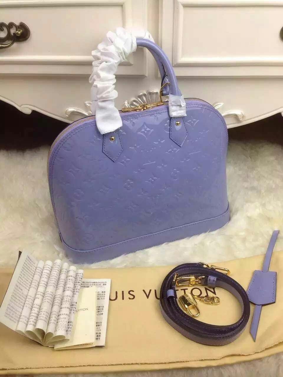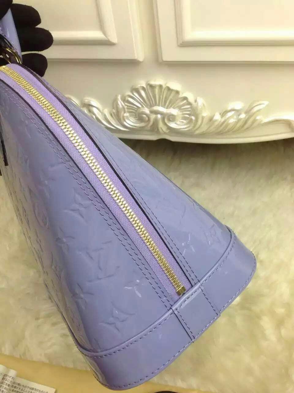 LV M91611薰衣草紫 进口原版漆皮+24k五金+进口YKK拉链手提包