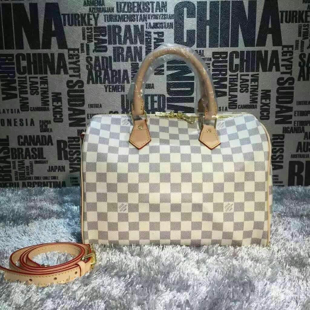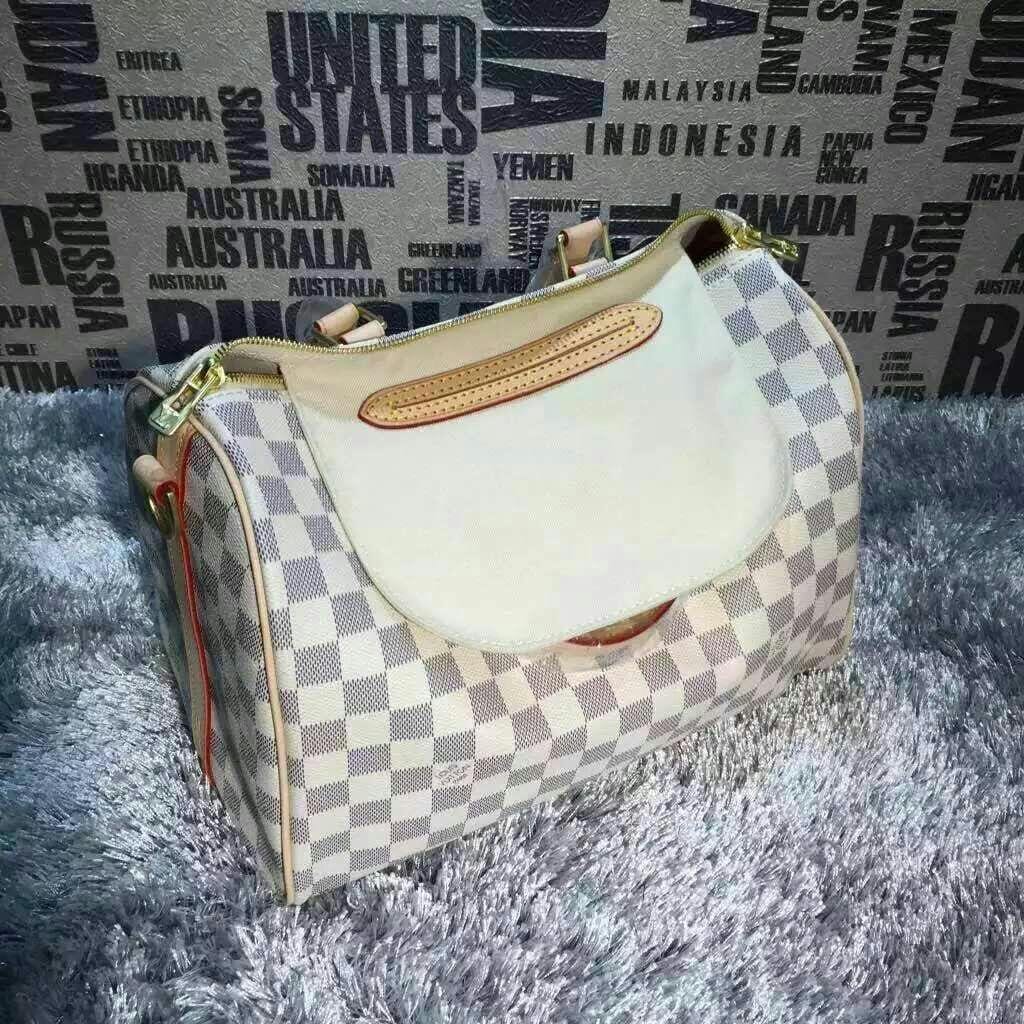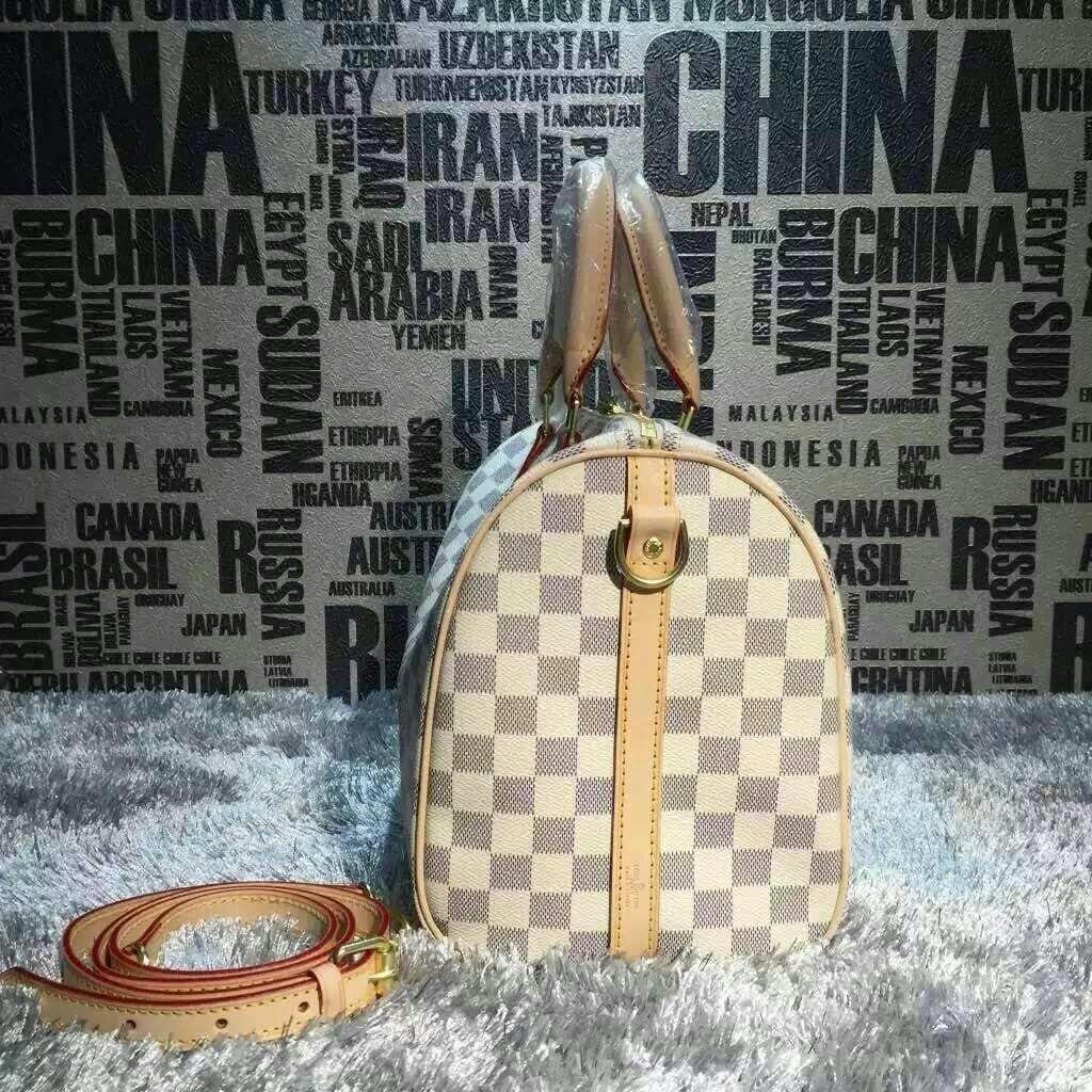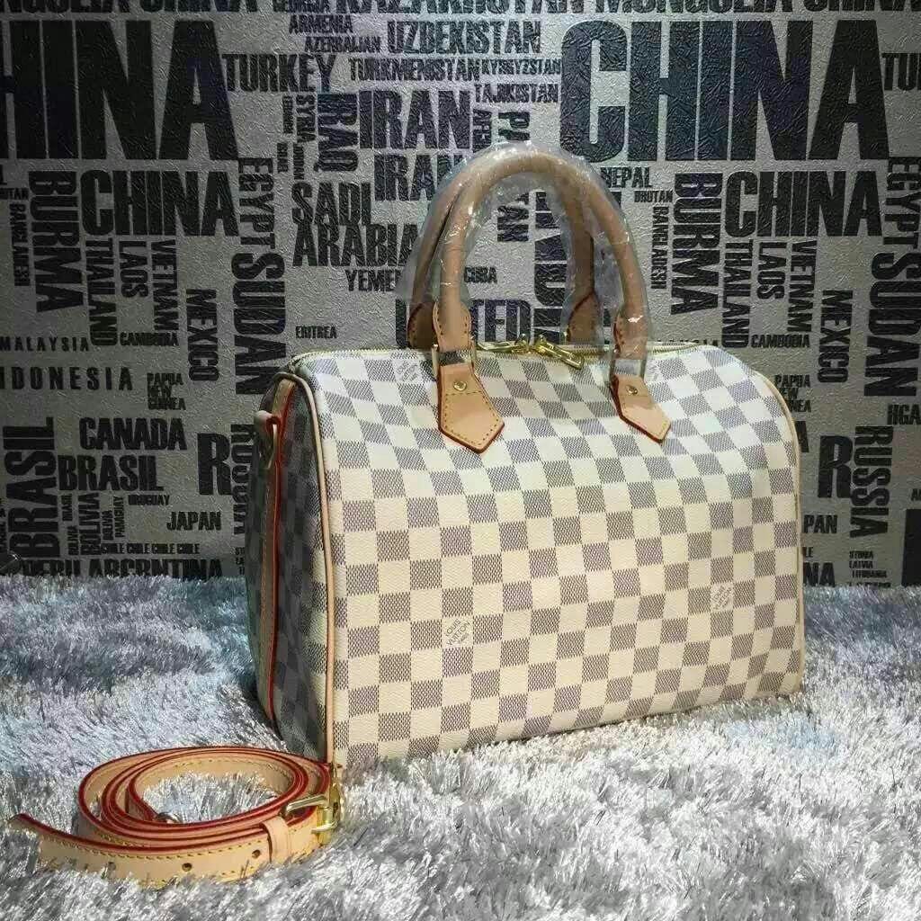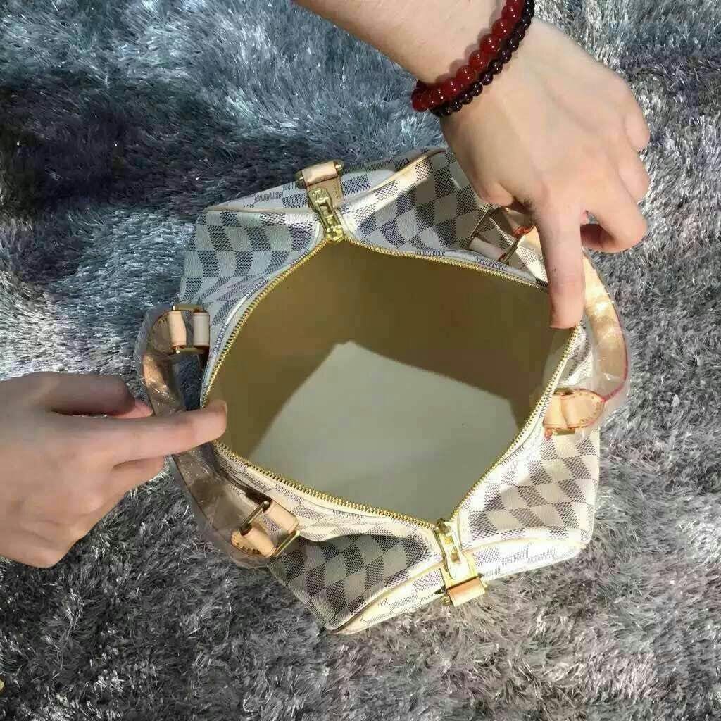 LV专柜同款 枕头包 实物实拍 款号:41373牛皮白格 手拎 底部宽度分别有25/30/35 购买时备注宽度
