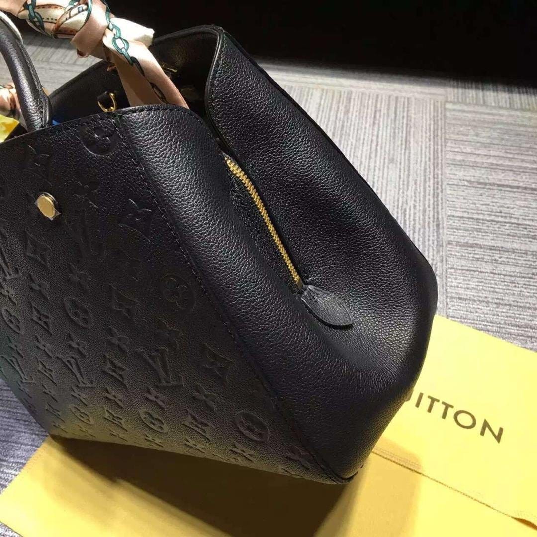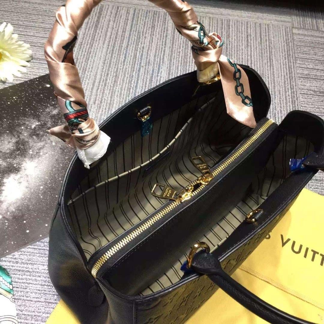 原单品质M41048黑色 Montaigne 手袋 蒙田系列是活力四射的商务女士的理想之选。 富有立体感的造型与精巧的内部设计令该手袋可装纳所有日常必备用品,而 Monogram Empreinte 皮革则为其平添一份雅致之感。大号尺寸: 33x 23 x 15 cm ,小号29×20×12cm(长 x 高 x 宽) - 全钢金属配件- 肩背带可用于手提、肩背或斜挎- 光滑的小牛皮饰边- 条纹棉布内衬- 包内中部有 1 个拉链隔层,带挂锁标识- 包内有 2 个功能隔层- 1 个双智能手机内袋-1 个大号扁平袋
